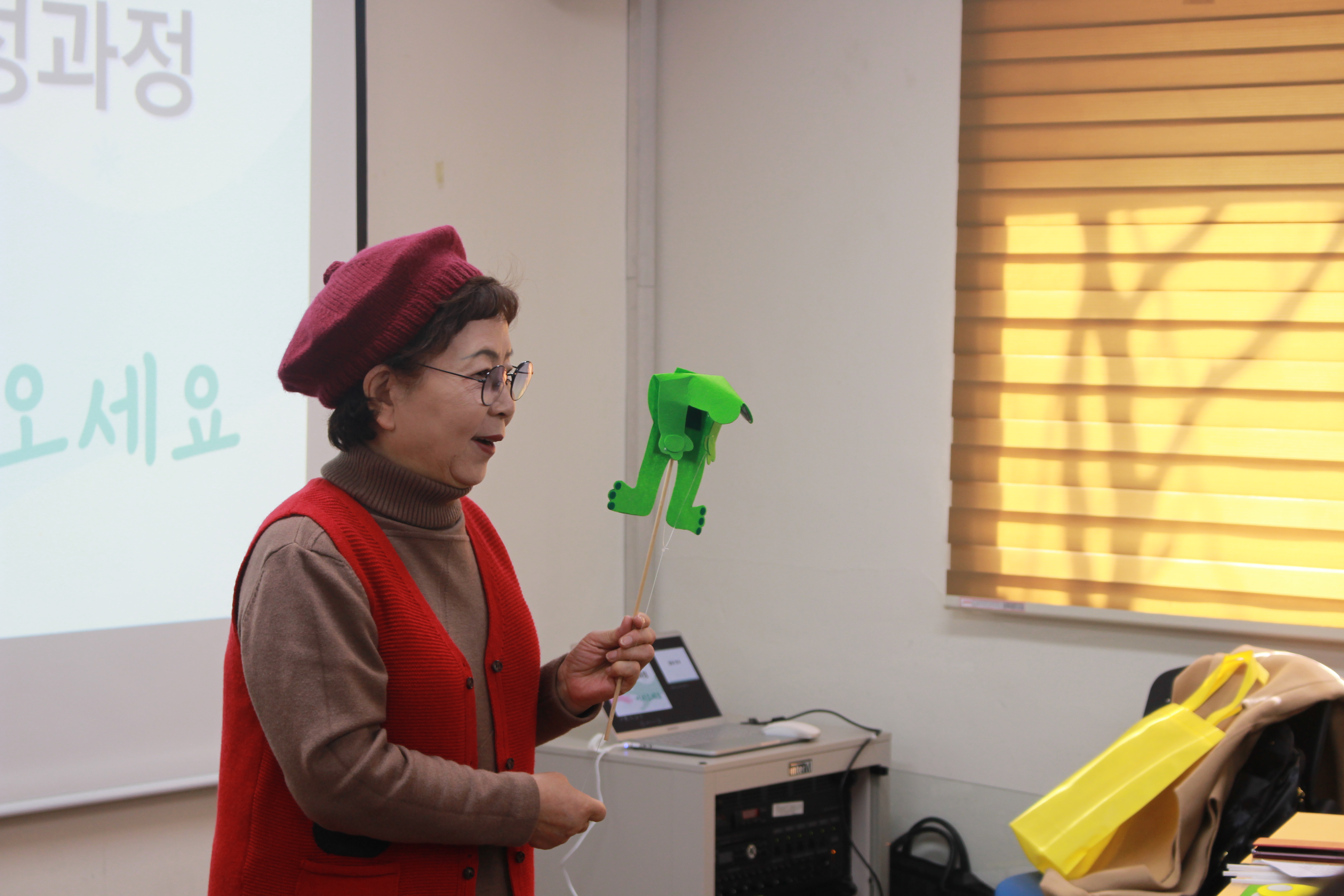 기본교육이 끝난 후 동화사랑 이규원 소장의 ‘손유희 필살기’강의가 있었습니다. 아이들과 친해지고 아이들의 주의를 집중시킬 수 있는 다양한 율동을 배우는 시간이었습니다. 봉사자들은 처음에는 수줍어하다가 이내 적극적으로 따라하는 열정을 보였습니다. 이외에도 동화 구연, 교구 만들기 활동이 진행됐습니다. 이규원 소장은 아이들에게 긍정적 사고를 하게하고 사랑을 주기 위해 노력해야하며 신체언어를 활발히 사용하는 것이 중요하다고 강조했습니다.