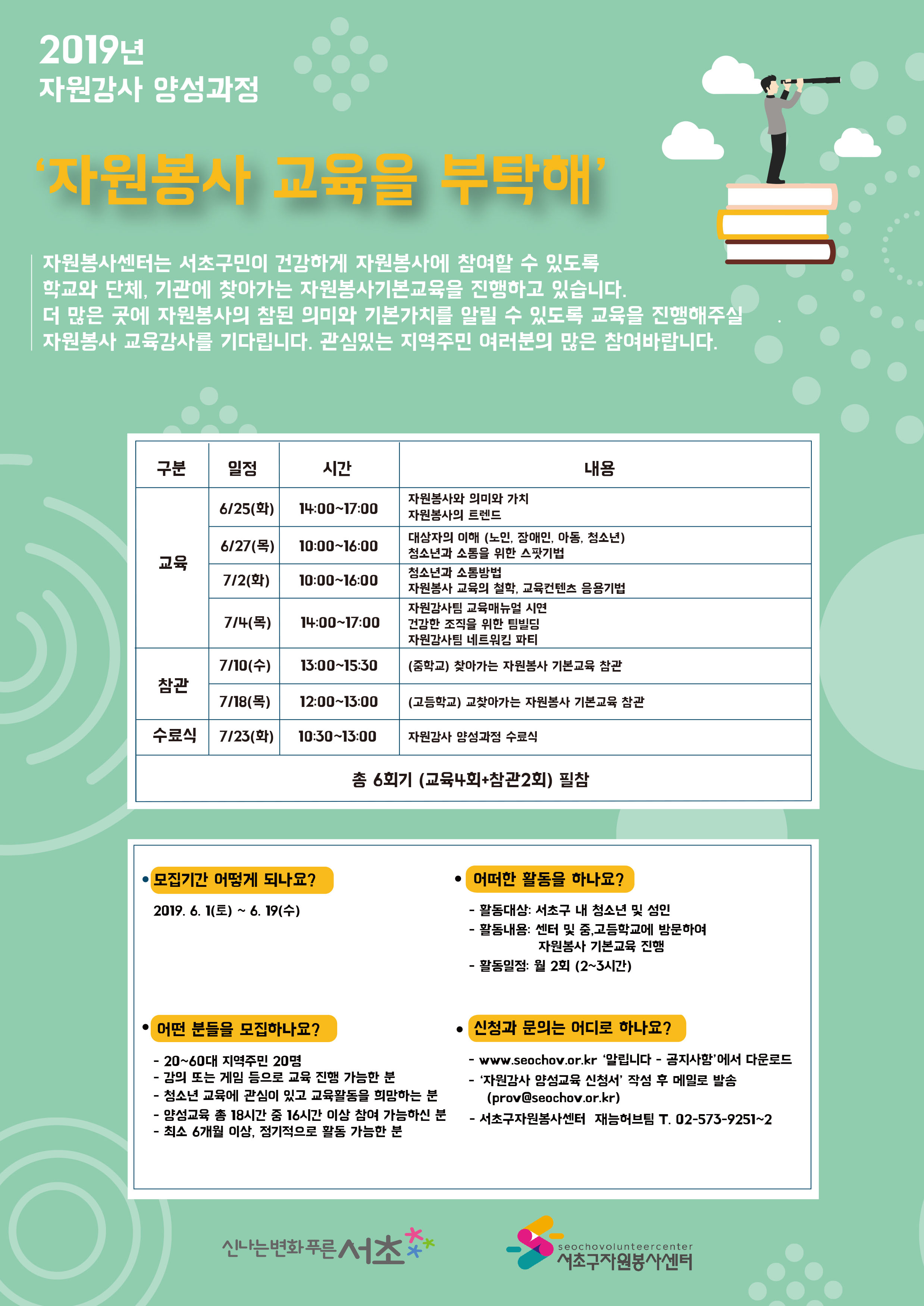 자원봉사센터는 서초구민이 건강하게 자원봉사에 참여할 수 있도록 학교와 단체,