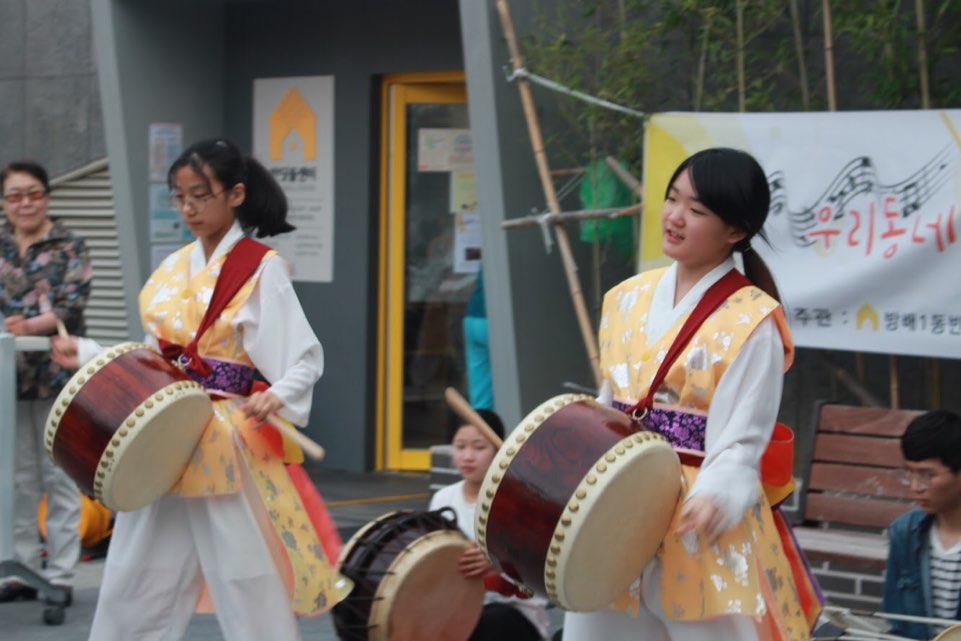 착한안테나가 방배1동 반딧불센터를 방문했을 때 ‘우리동네 골목음악회’를 빛내줄 공연 팀들의 준비가 한창이었습니다. 한배아트컬쳐스 산하 청소년 국악동아리‘타’, 방배1동 주민자치 프로그램의 ‘노래교실’, ‘오카리나’, ‘통기타’ 총 4개의 팀이 음악회를 빛냈는데요! 공연 시작 전부터 합을 맞추거나 웃으면서 긴장감을 푸는 모습이 절로 미소를 자아냈습니다.