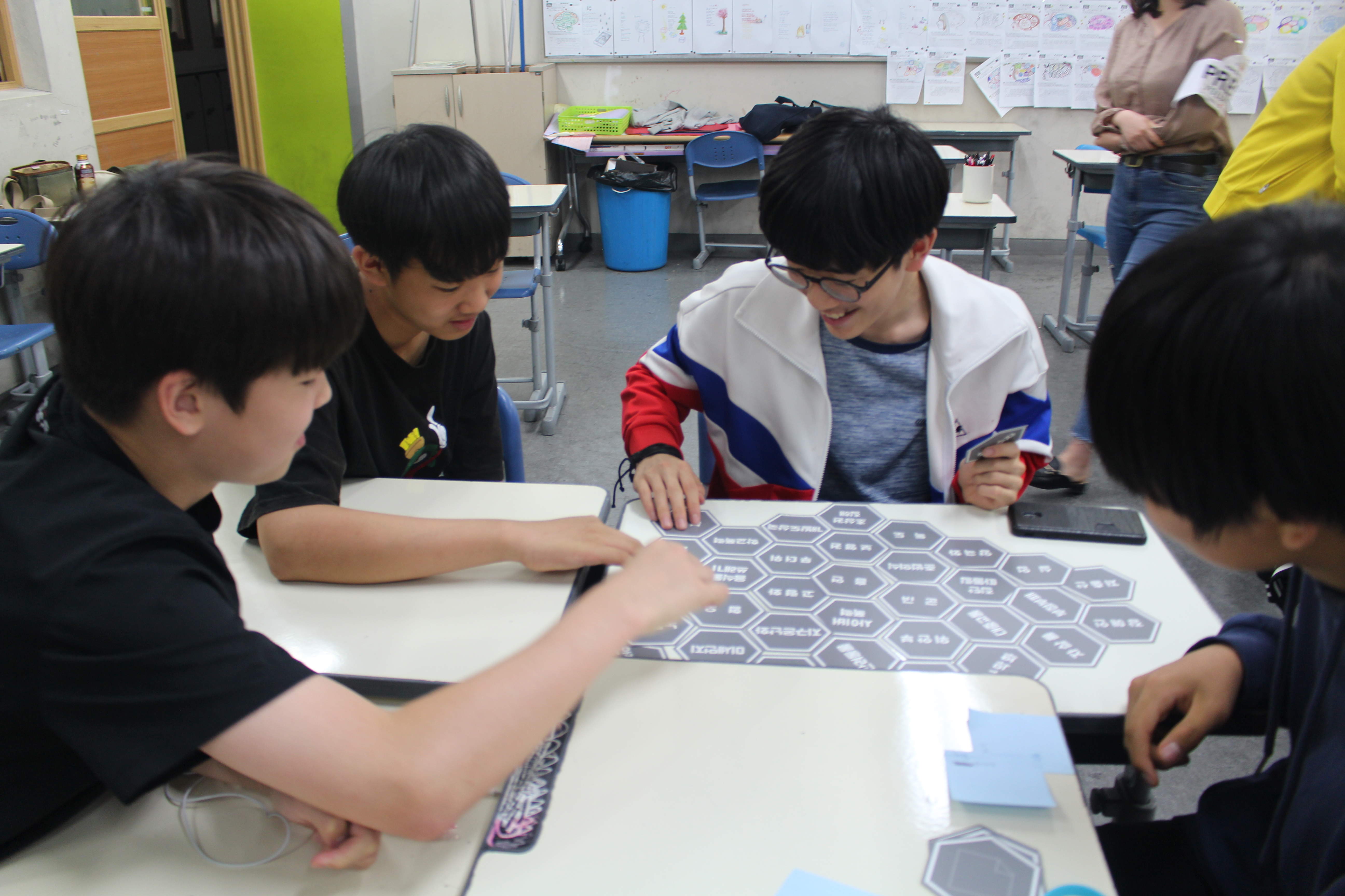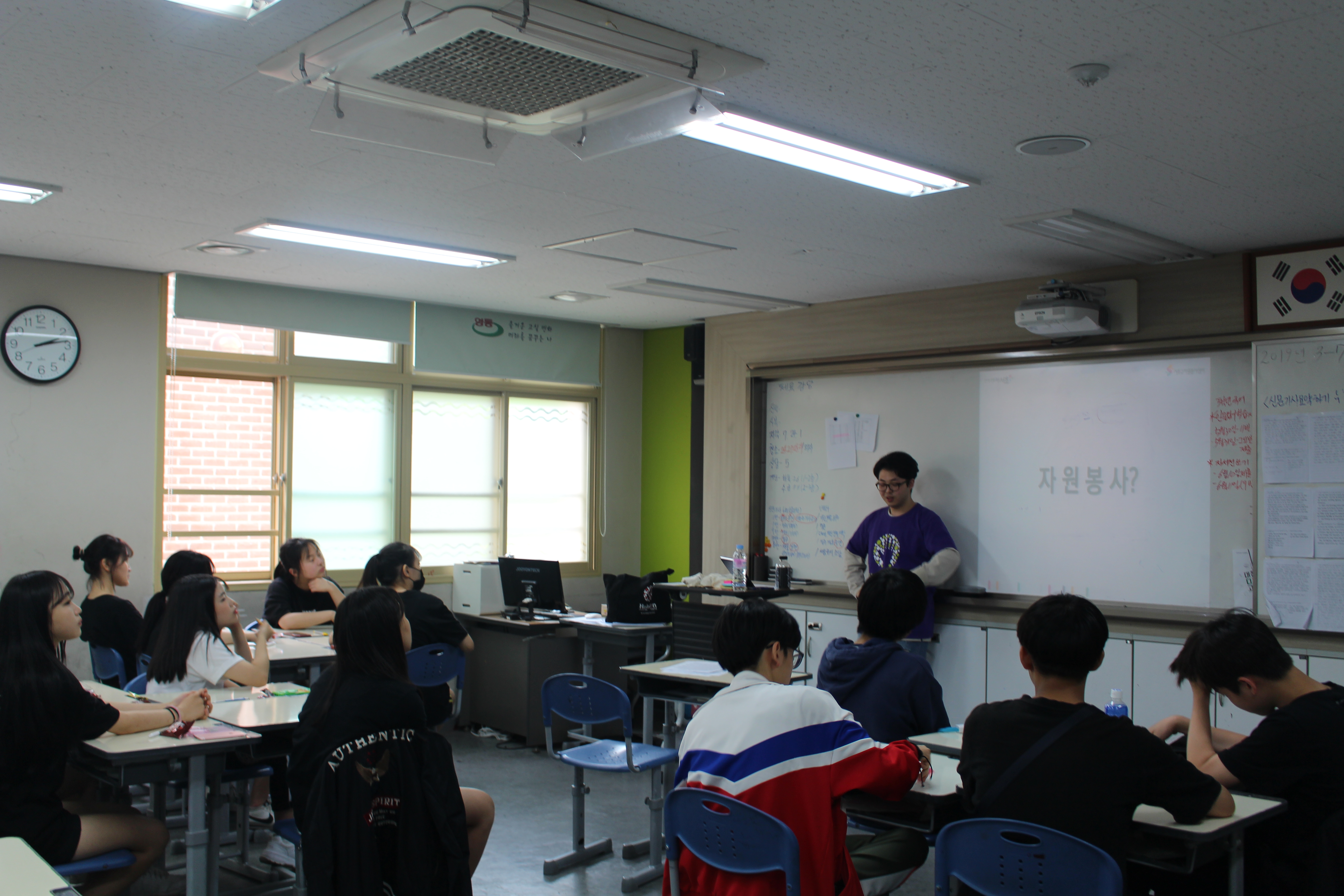착한안테나가 영동중학교의 한 교실을 방문하니 학생들은 저마다 조를 짜 3개의 조로 나뉘었습니다. 프로젝트가 진행되면서 ‘자원봉사’의 의미와 봉사활동의 의미, 봉사학습의 의미 등 학생들의 다양한 생각들을 들을 수 있었습니다. 학생들은 한 사진을 보고 문제점과 해결방안을 찾아냅니다. 제시 된 사진으로 다양한 의견을 들을 수 있었습니다. 학생들의 생각이 깊어 놀라웠던 순간이였습니다.