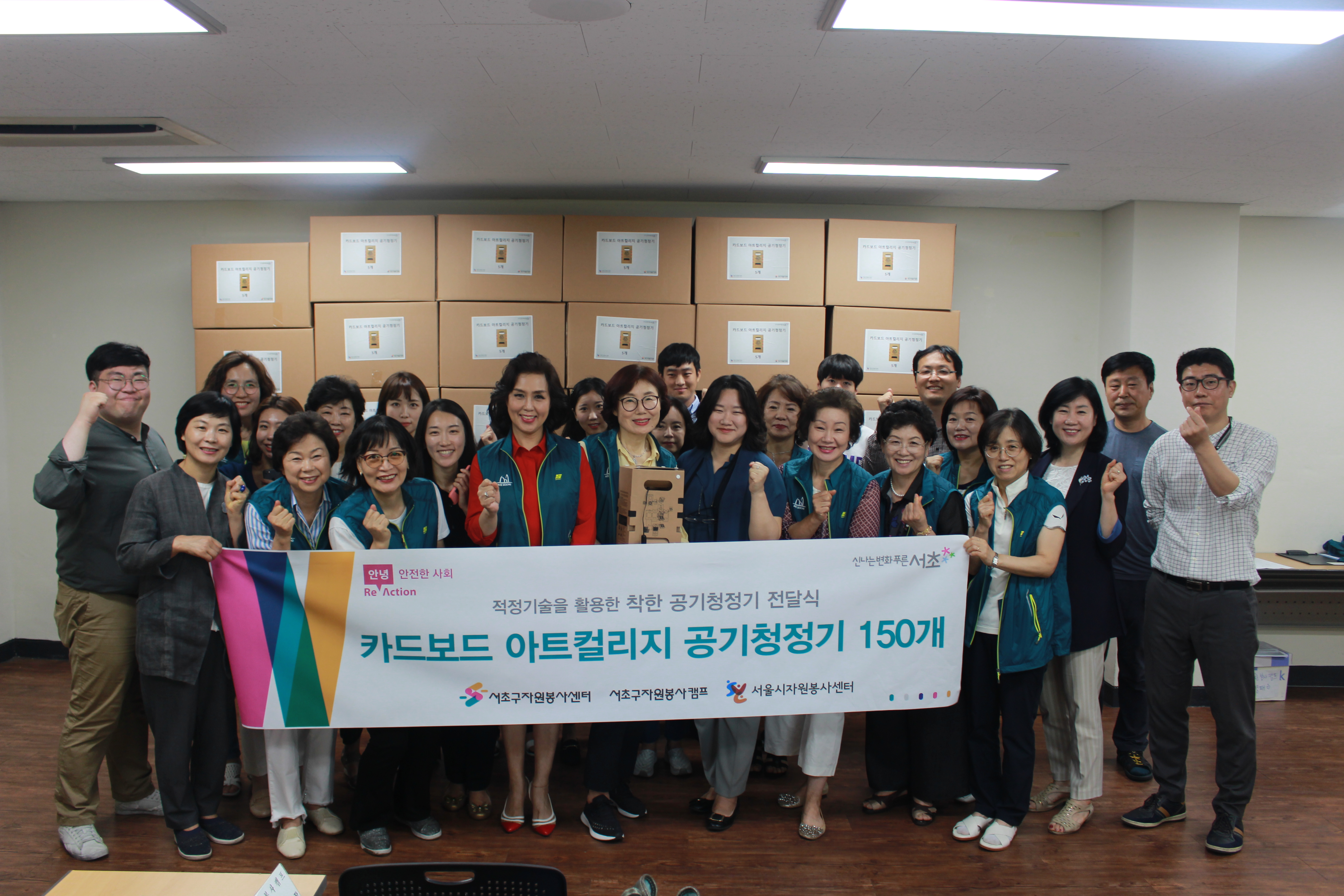미세먼지에 위협을 받고 있는 기후약자들에게 맑은 공기를 선물해 줄 공기청정기 전달식이 6월 13일(목)에 서초구자원봉사센터에서 진행되었습니다.