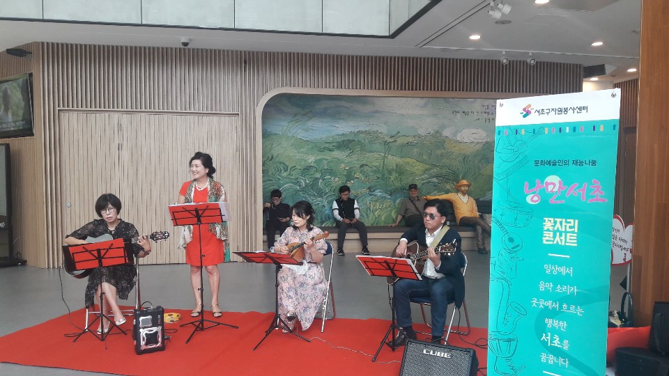 앞으로도 많은 관심과 사랑 부탁드리며, '낭만서초'참여를 원하시는 다양한 장르의 공연팀들 대환영입니다^^