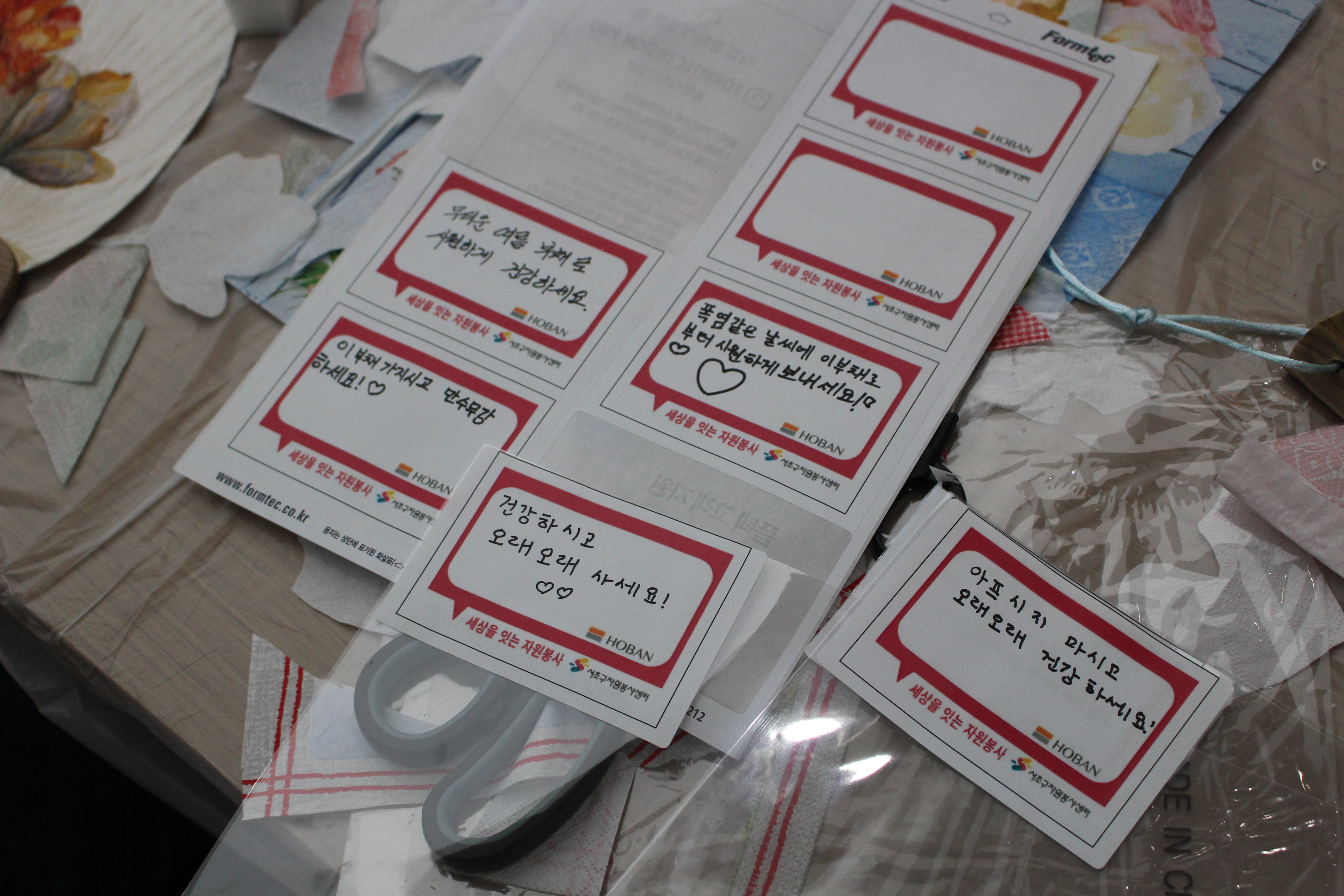 본 활동은 직접 3개의 부채를 제작하고 포장한 후 그 위에 어르신들께 전하는 마음의 메시지를 적는 것까지, 약 3시간 정도 진행되었습니다. 많은 봉사자들은 모두 진심을 다해 봉사에 임하려는 자세를 보였고, 그만큼 현장에서는 남녀노소를 불문하고 그 열기가 아주 뜨거웠습니다.