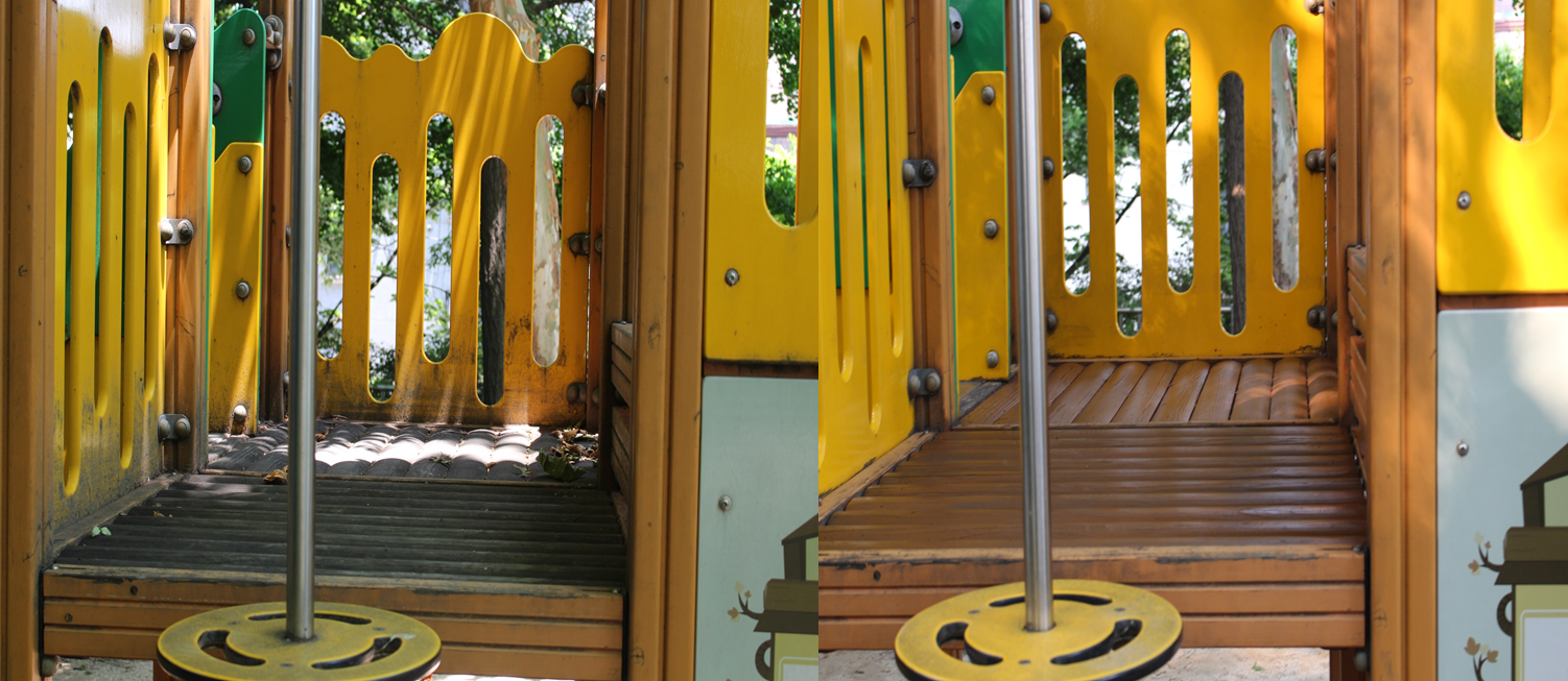 청소가 끝난 뒤엔 나무로 된 놀이터 바닥, 계단, 울타리 등이 썩지 않토록 오일스테인 작업을 진행했습니다. 나무가 썩거나 곰팡이 피지 않도록 꼼꼼하게 한 번 두 번 덧칠하였습니다. 작업이 진행될 수록 어두웠던 나무 색이 화사하게 생기를 머금었습니다. 오일스테인 작업이 끝나고 다들 모여 인사 한 후 이번 활동을 마무리 지었습니다.