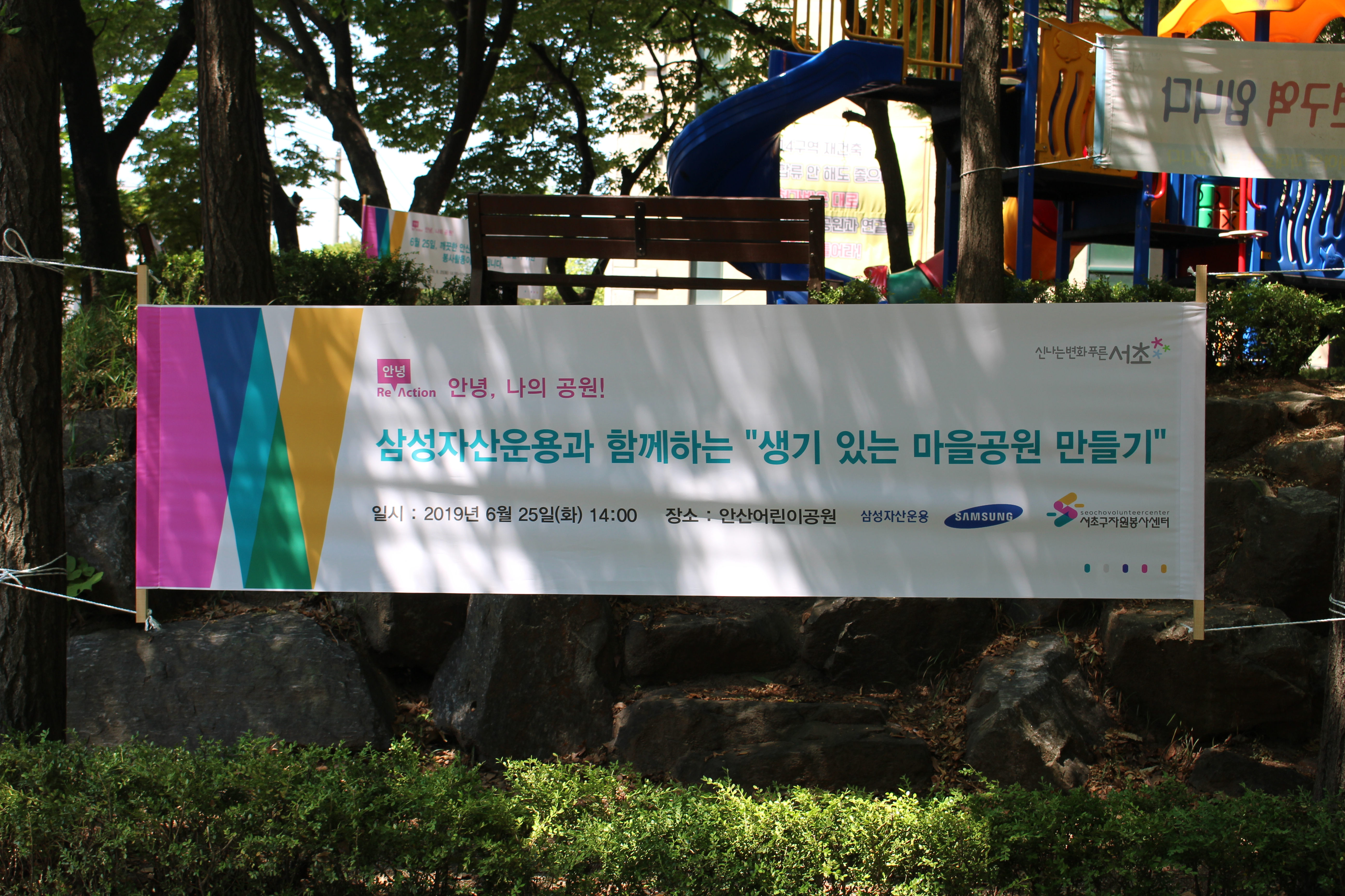 삼성자산운용과 함께하게 된 이번 생기있는 마을공원 만들기는 방배역 근처, 안산어린이공원에서 진행되었습니다! 생기있는 마을공원 만들기는 2015년도를 시작으로 현재까지 총 13개의 공원을 탈바꿈 시켰습니다. 마을의 중요한 요소 중 하나인 공원을 조금이라도 손봐주면 마을 사람들이 다시금 공원을 이용하고 활성화가 되기 때문입니다.