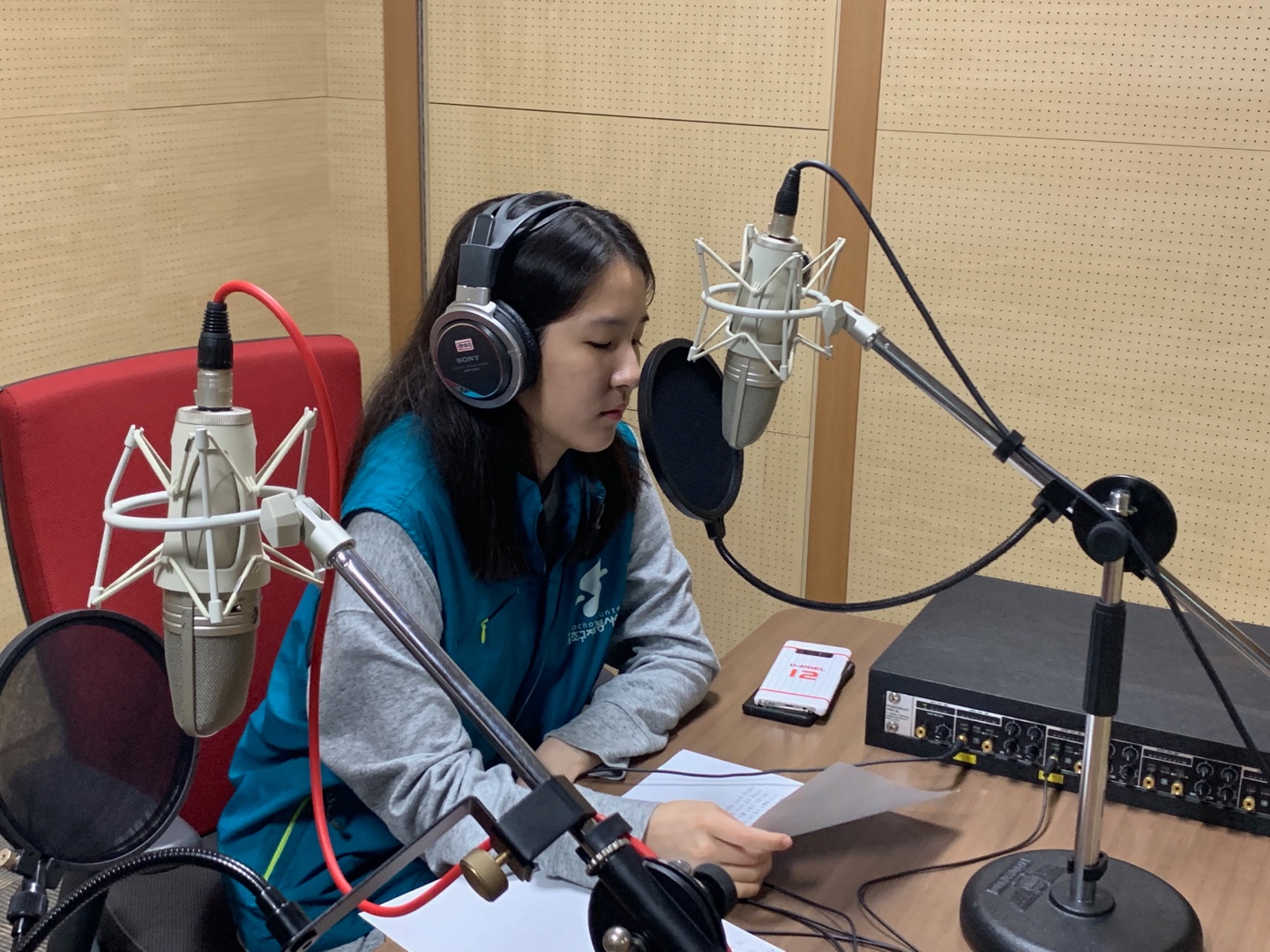 기획회의가 먼저 종료된 조부터 녹음실로 이동하여 한명씩 녹음을 진행하였습니다.