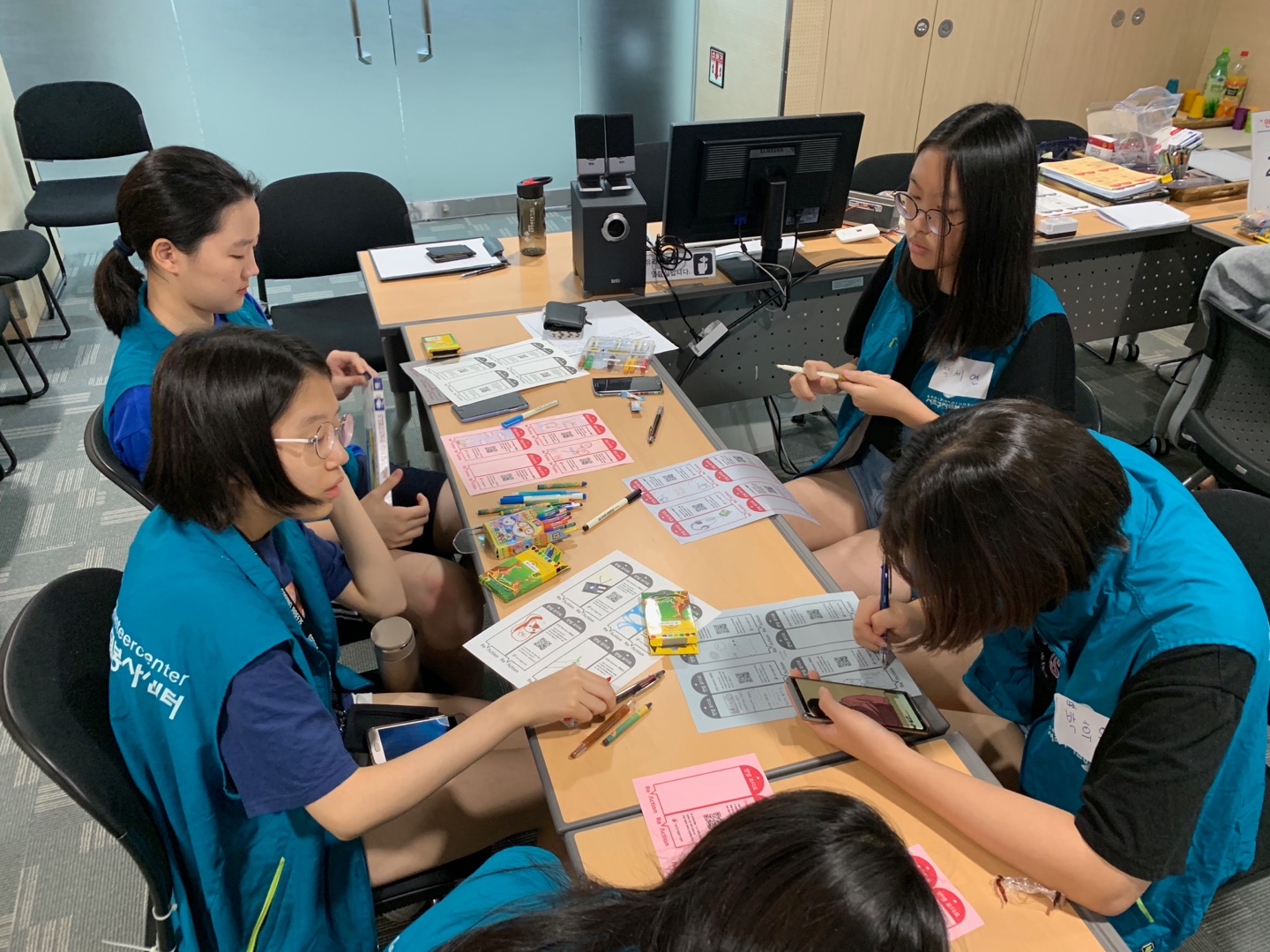 청소년들의 오디오가 담길 영상 채널의 QR코드가 담긴 책갈피를 직접 꾸미는 시간이었습니다.