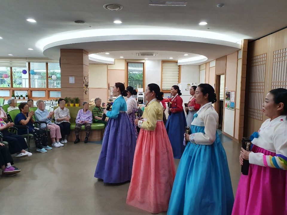 오늘 참살이 민요봉사단이 건강보험공단 서울요양원을 찾아 더위를 한방에 날리는 시원시원하고 속이 뻥 뚫리는