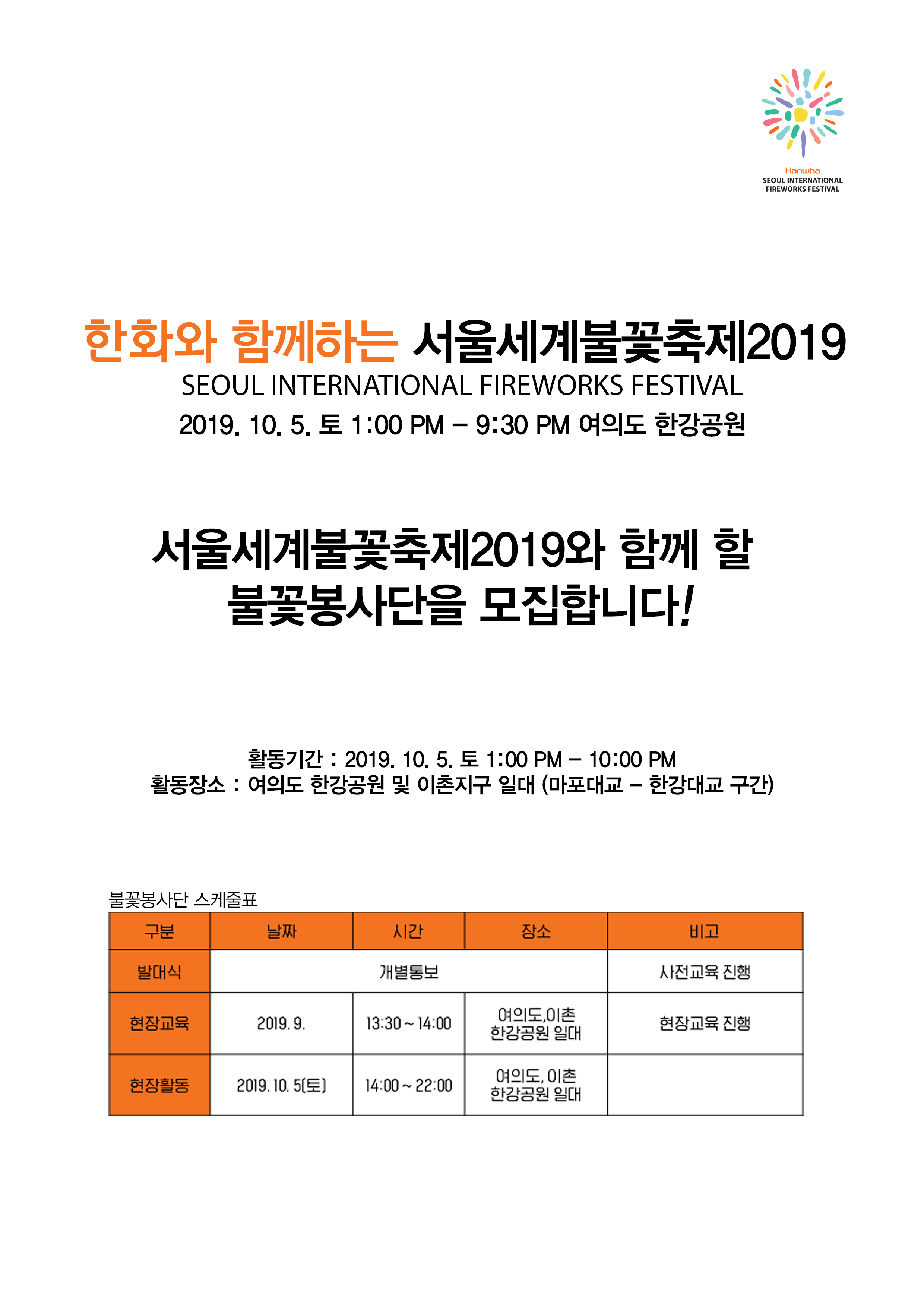 1. 활동기간 : 2019년 10월 5일 토요일 (13:00 ~ 22:00)