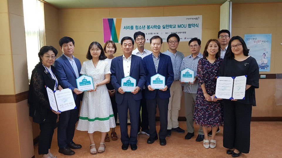 | [보도자료]서리풀 청소년 봉사학습 실천학교 MOU 체결 (0) | 2019.08.26 |