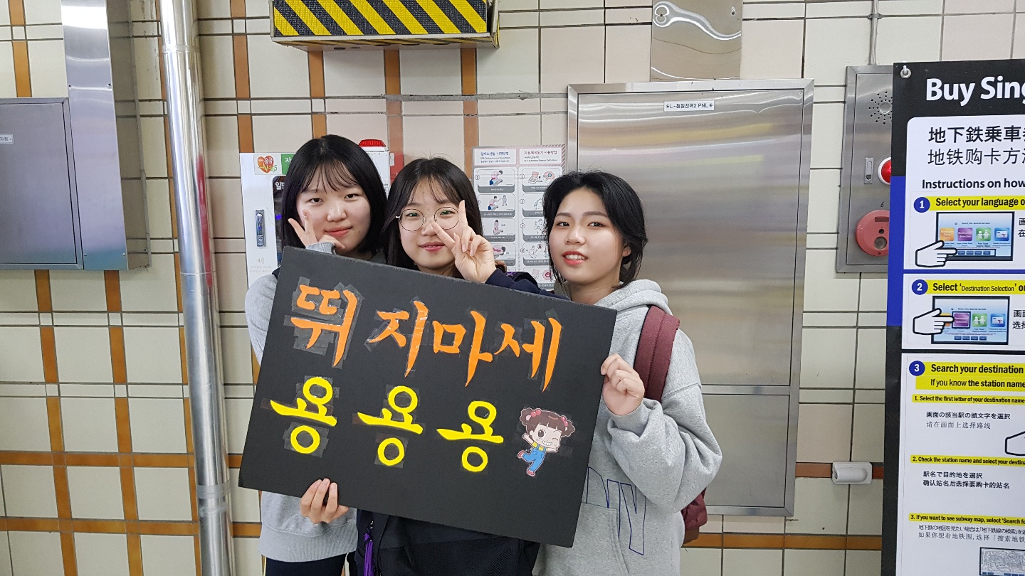 2학년 4반의 히어로가 근무하는 양재역에서, 학생들이 스스로 전달할 메세지를 선정하고 문구 하나하나를 정하는