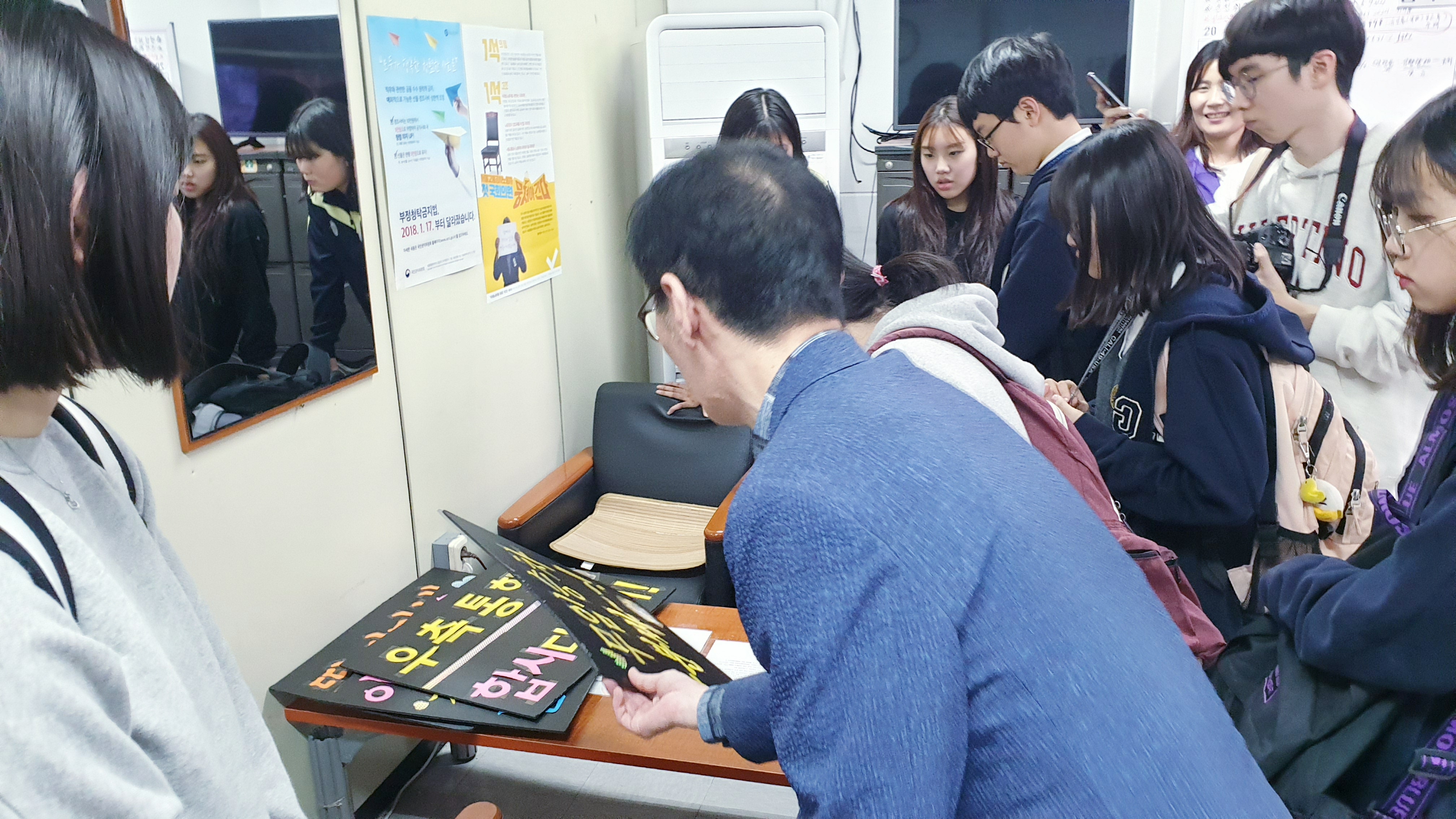 캠페인에 나가기 전에는 학생들이 주눅들지 않도록 용기를 북돋아 주시고 피켓의 문구를 하나 하나 읽어보셨습니다.