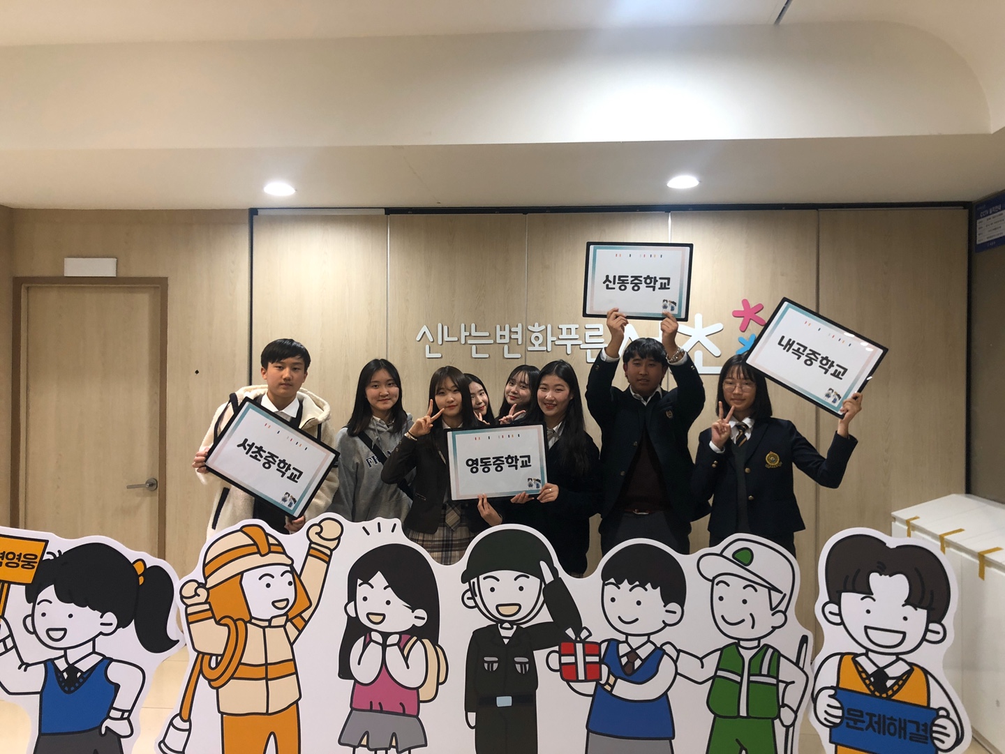 2019년에는 내곡중, 서초중, 신동중, 영동중 4개학교 8학급이 참여했습니다.