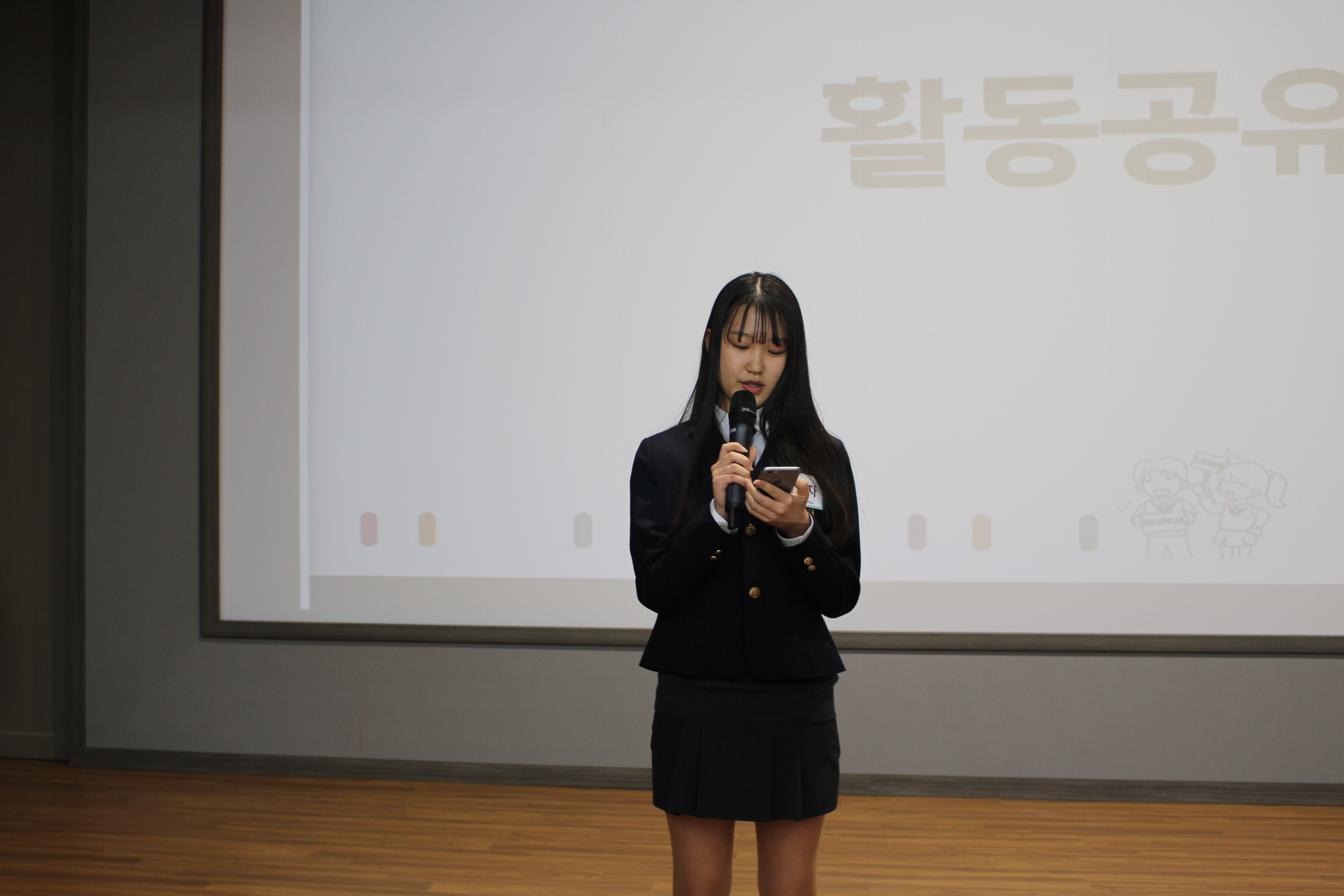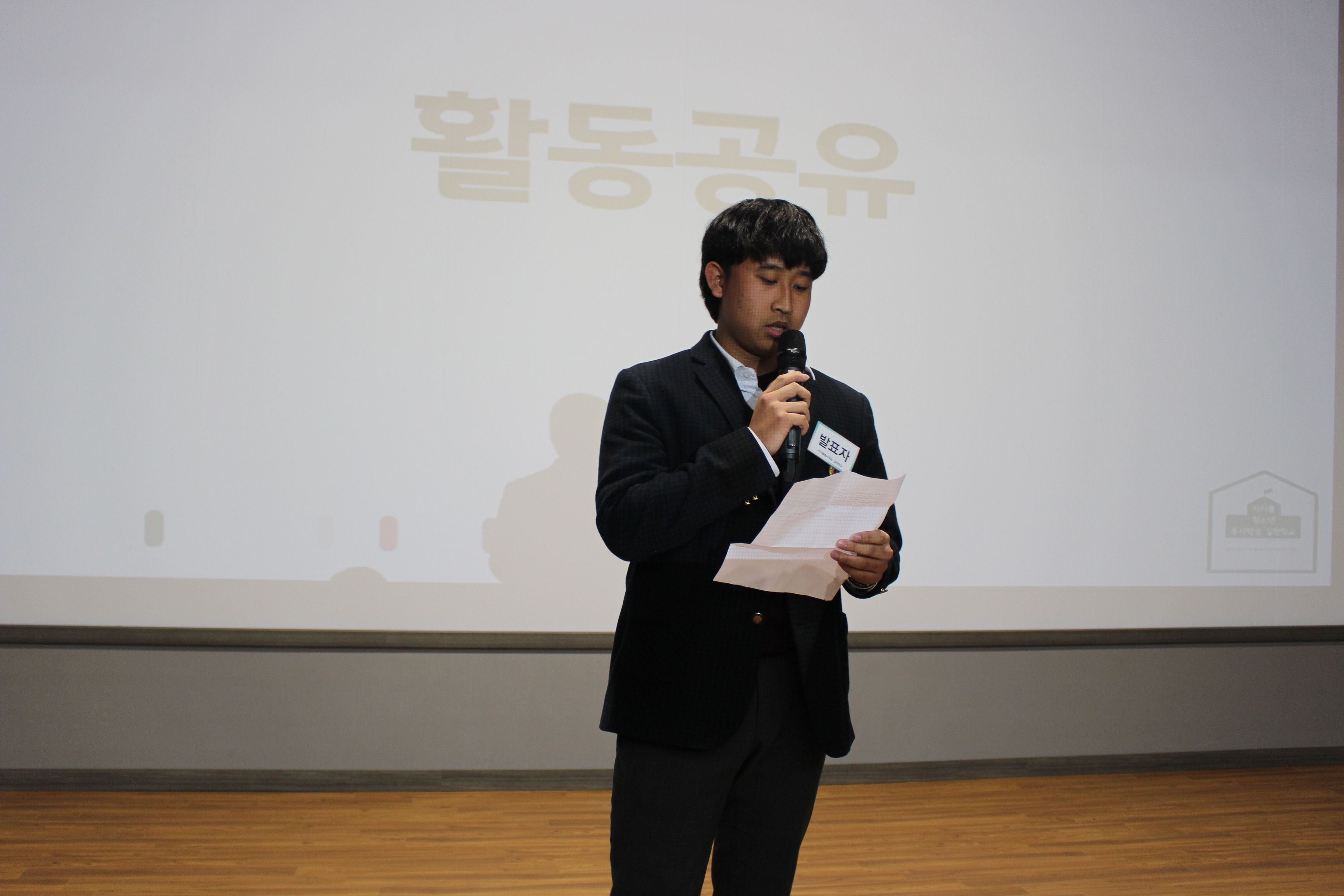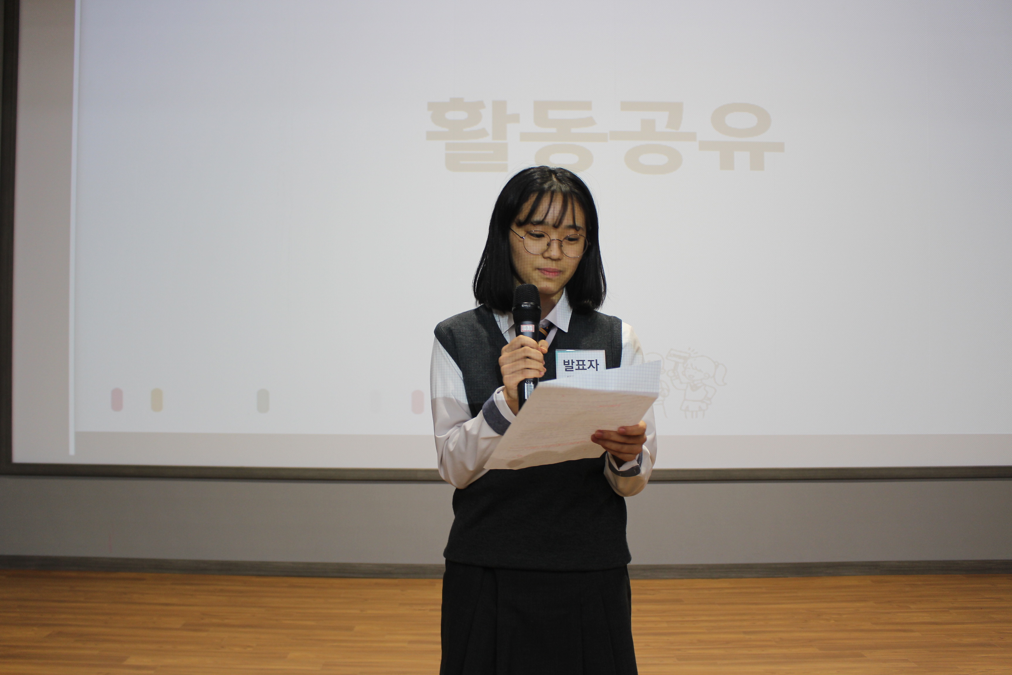 이번 활동공유회에 가장 눈에 띄었던 점은 약 150명이 넘는 학생들이 모이는 자리였음에도 불구하고 질서가 굉장히 잘 지켜졌다는 것이었습니다. 서초구 자원봉사센터 직원분들과, 선생님, 멘토분, 학생대표들의 통제에 따라 한 줄로 줄을 서서 출석 명단에 서명을 하고 학급별 지정된 좌석에 질서있게 착석하였습니다.