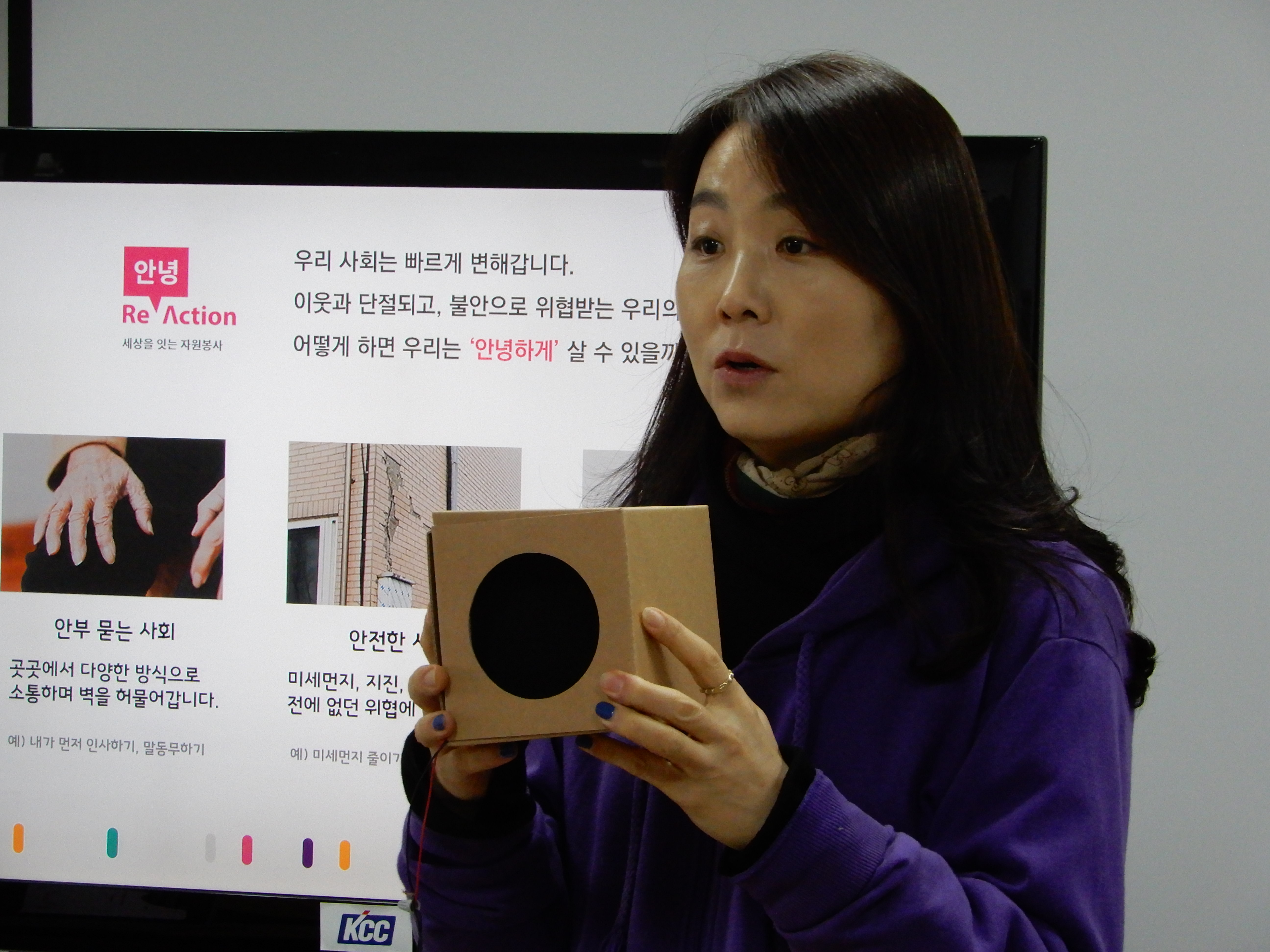 7월 29일 월요일 오전 10시, 서초구자원봉사센터 소속 핸즈온 프로젝트리더들이 20여 명의 청소년과 함께 서초4동 주민센터에서 안녕 Re-Action 캠페인의 일환인 ‘D.I.Y 공기청정기’ 활동을 하였습니..