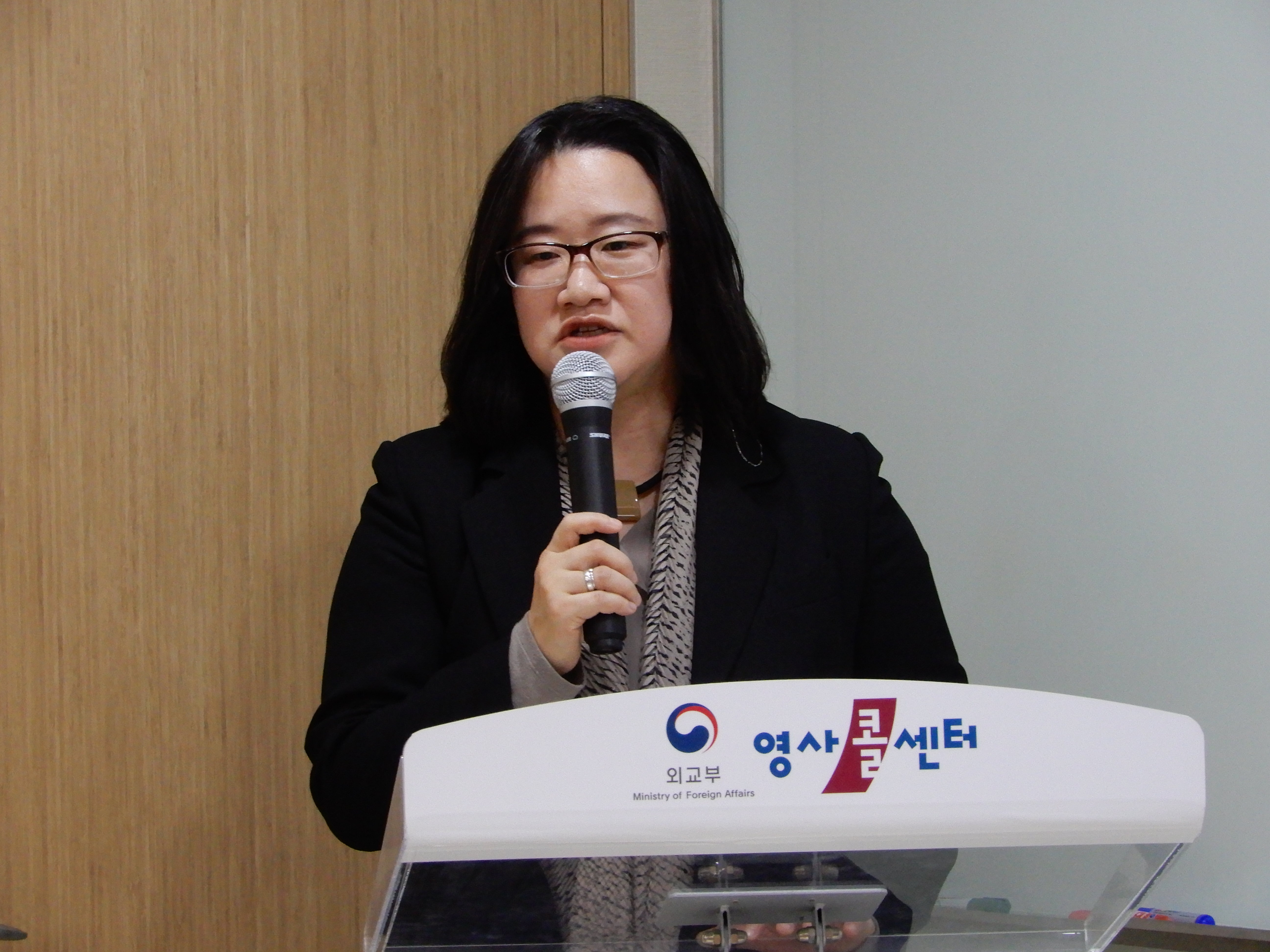 첫 순서로 영사콜센터 자원봉사단 현황 보고가 있었는데요. 마이크를 잡은 강행구 영사콜센터 소장은 “영사콜센터 상담 품질 향상을 위한 상담 녹취 전화모니터링을 민원인의 관점에서 보다 객관적이고 공정한 평가는 물론, 인천공항 해외안전여행 캠페인, 국제관광박람회 참가 등 대외홍보 활동을 통해 영사콜센터를 널리 알리 데 많은 도움을 주셨다. 진심으로 형언할 수 없는 감사의 말씀을 드린다.”라고 감사의 말을 전했습니다.