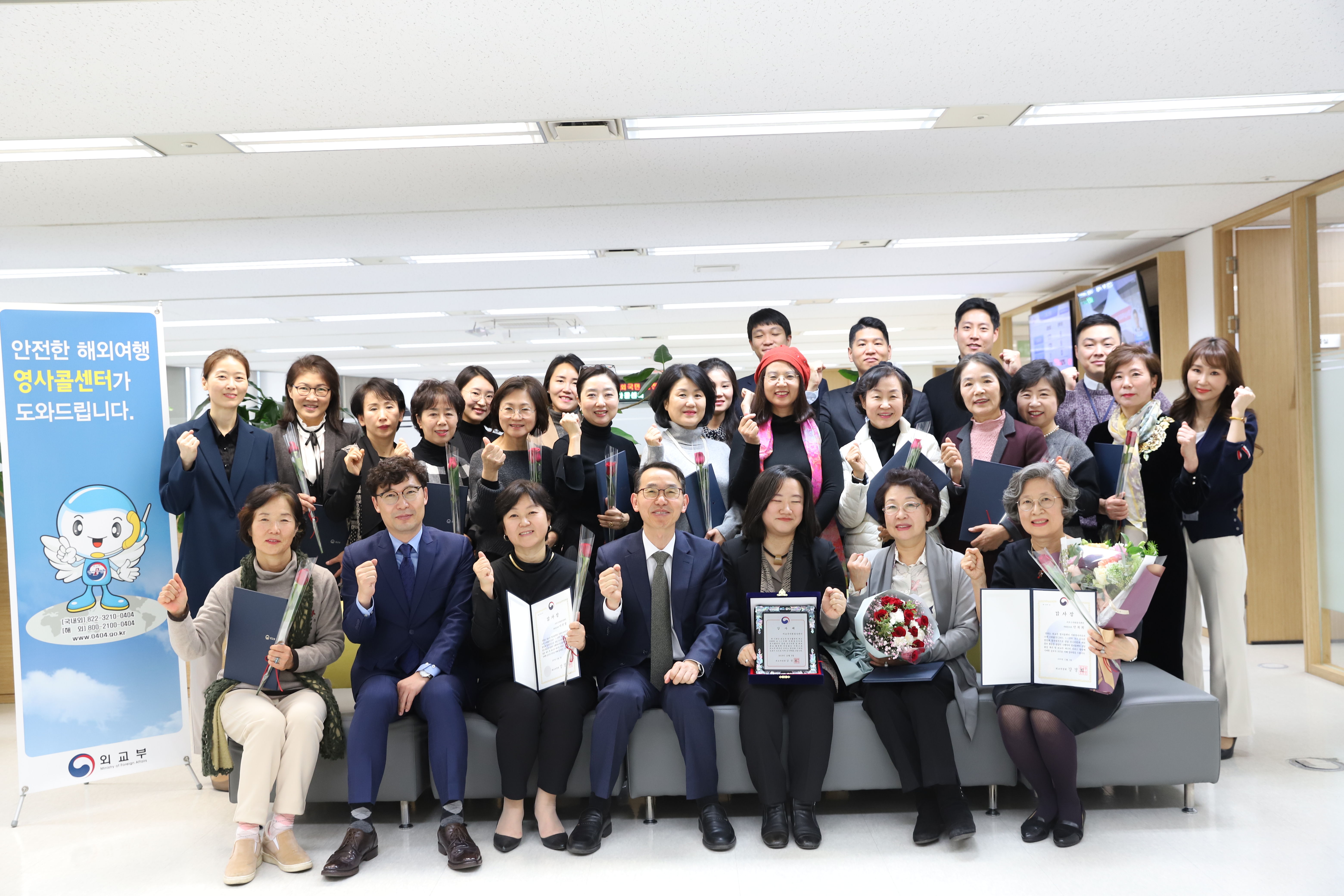 이어 강형식 외교부 해외안전관리기획관은 “영사콜센터 발전을 위해 헌신적으로 봉사해 주셔서 감사드린다.”라며 “국민이 해외에서 어려움을 겪을 때 가장 먼저 찾는 곳이 바로 우리 영사콜센터인데, 헤아릴 수 없는 중요한 역할을 했다는 자긍심을 가져주길 부탁드리며, 외교부는 해외여행객 3,000만 시대를 맞아 재외국민 보호 및 영사 서비스 향상을 위해 계속 노력하겠다.”라고 말했습니다.