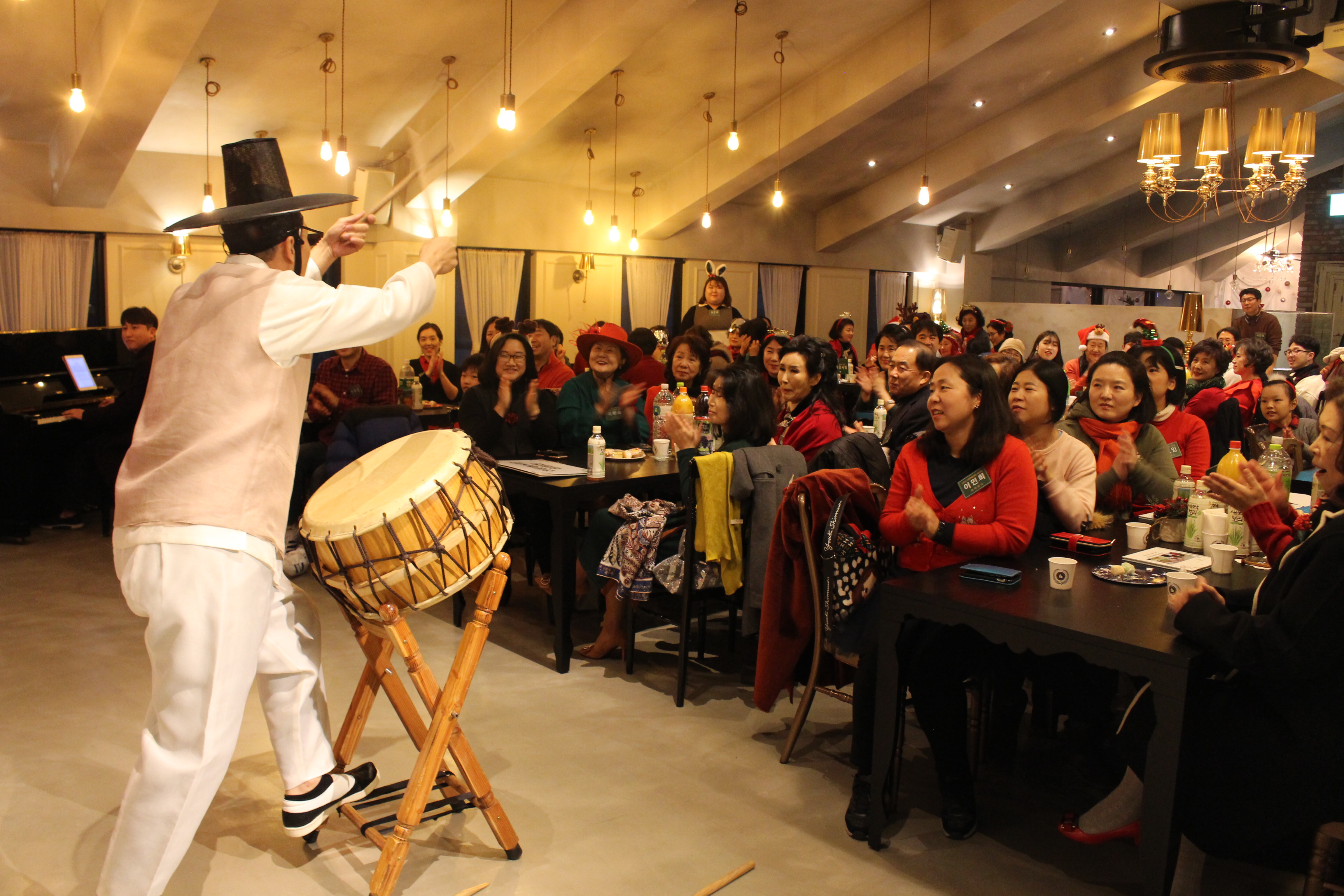 팀별로 자리에 모여 앉자 핸썸한 사회자의 소개로 한 팀씩 인사를 하며 송년회의 시작을 알렸습니다. 한 팀씩 박수를 받으며 소개를 하고 그 뒤에는 재능나눔 모델 사업을 진행해 왔던 5년간의 이야기를 들을 수 있었습니다. 다른 곳에서는 볼 수 없었던 새로운 시도여서 그 성과가 더욱 의미있었던 마마보노, 서초꿈멘토, 서초마을여행가이드, 낭만서초였습니다. 활동에 참여했던 봉사자분들의 이야기도 나누었는데요. '낭만서초'는 공연 재능나눔답게 퓨전국악공연을 신명하게 보여주면서 분위기를 돋우었습니다.