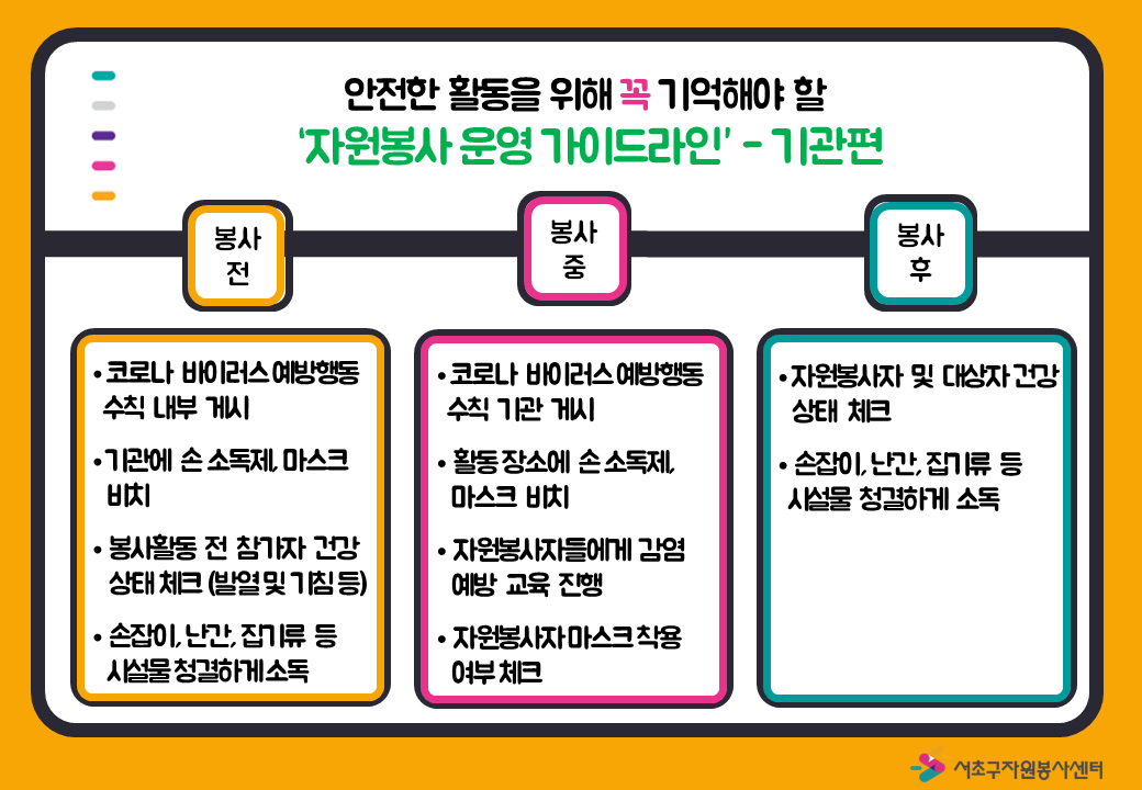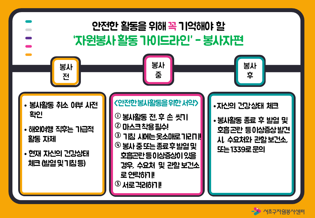 자원봉사자들의 안전을 위해 준수해 주시길 바랍니다.