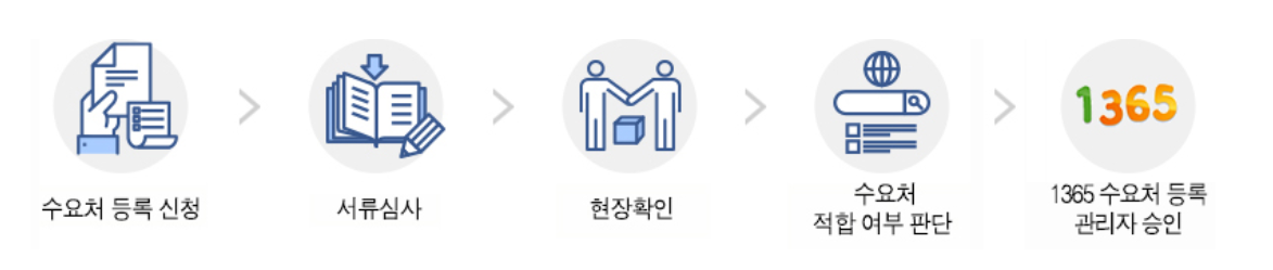 - 서류심사 및 현장실사 결과에 따라 1365자원봉사포털에 수요처 등록 - 수요처 관리자 권한 부여