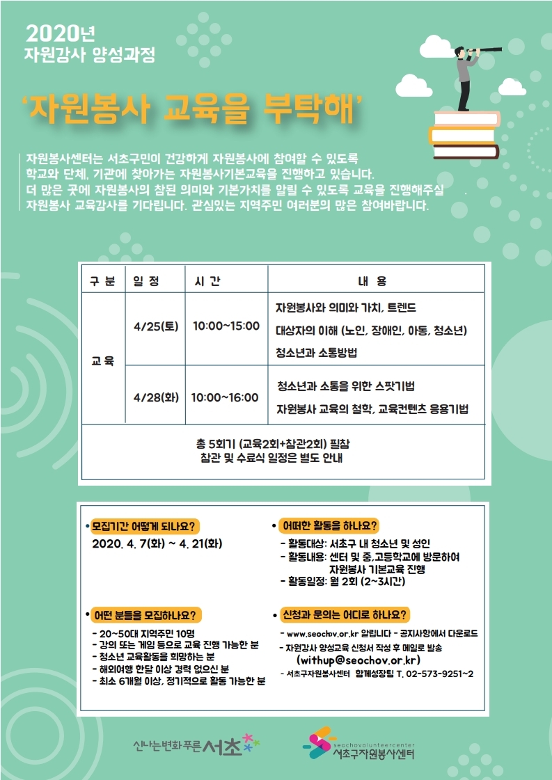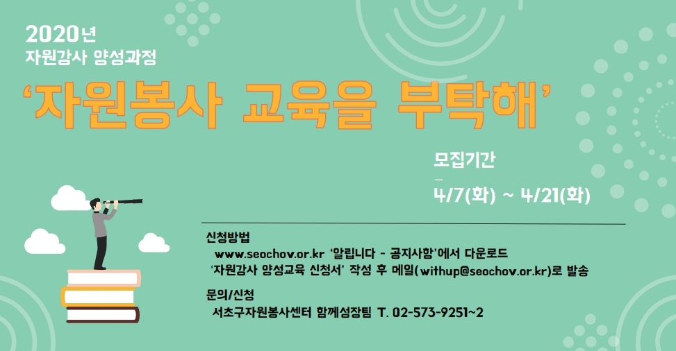 | [긴급]서초구자원봉사센터 임시휴무 (0) | 2020.03.03 |