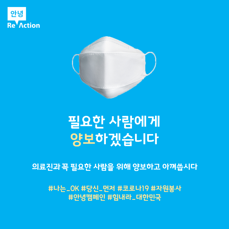 내가 구입한 공적마스크를 기부하거나, 의료진에게 양보서명, 응원메세지 남기고
