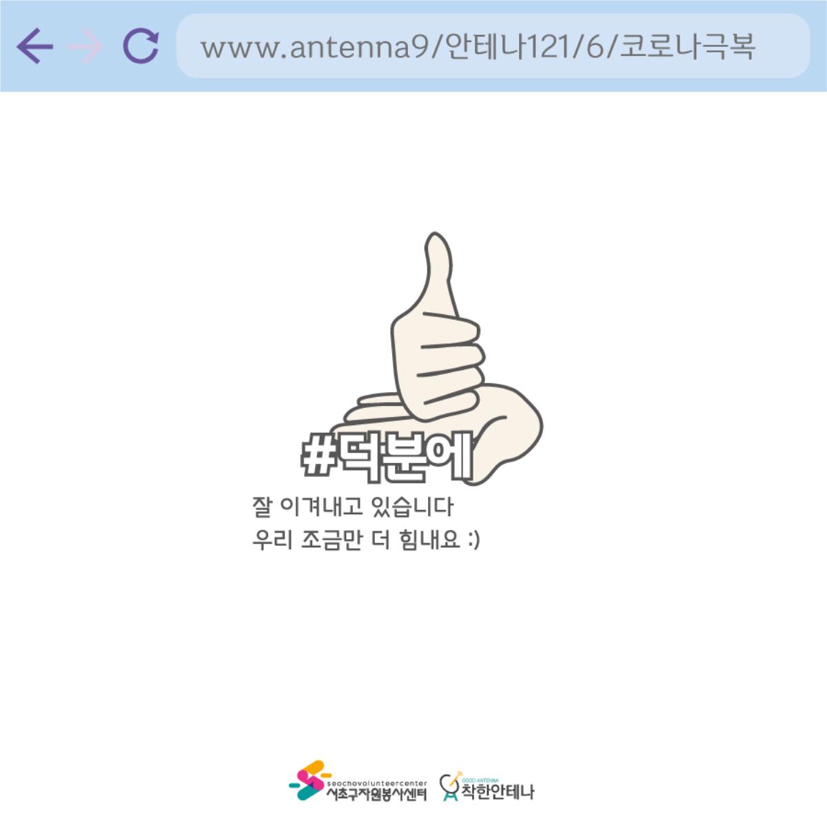 | [착한안테나-코로나19극복 콘텐츠④]코로나19를 견뎌내는 우리들의 모습 (0) | 2020.05.07 |