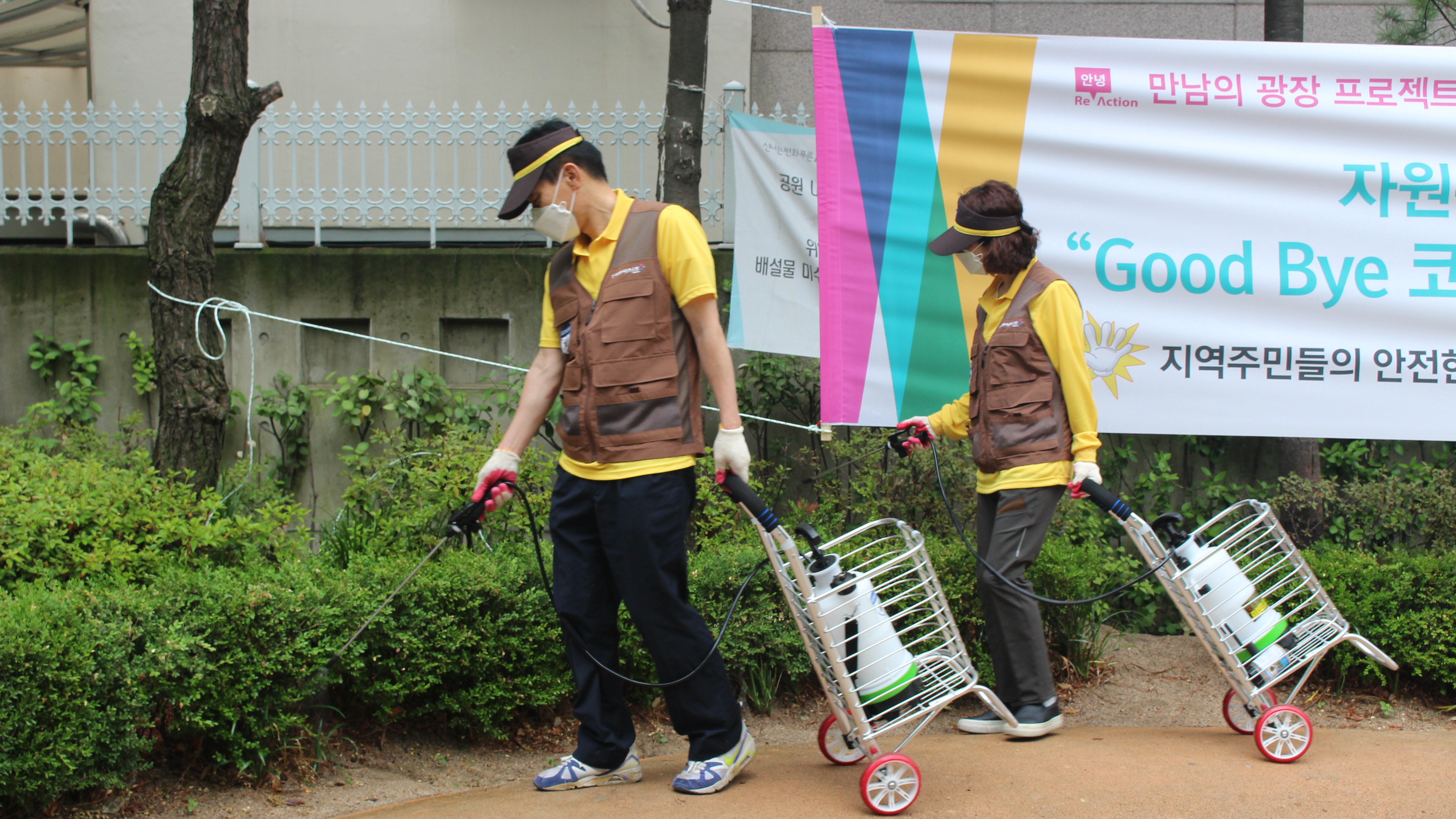 A. 코로나의 장기화로 인한 이런 시국 속에서도 이웃과 함께 할 수 있는 봉사활동에 어떤것이 있을까 고민하다가 공원소독을 떠올리게 되었습니다. 코로나19로 인해 집에만 있으면 쉽게 우울해지고 무기력해질 수 있는데 약간의 거리를 두면서 함께 할 수 있는 봉사활동을 고민하다가 반포4동 자원봉사캠프와 연합하여 이번 봉사를 기획해보았습니다.