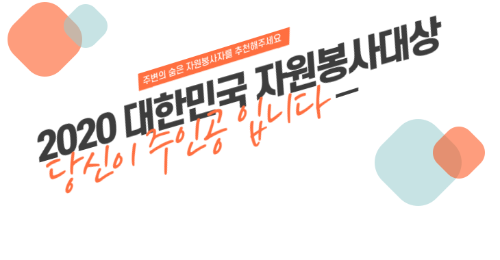 이 곳에서 ‘2020년 대한민국 자원봉사대상 추천 안내’ 팝업창 접속을 통해 바로 추천할 수 있으며, 관련 문의사항은 지역별 자원봉사센터(지역번호+1365)에서 친절하게 안내받을 수 있다.