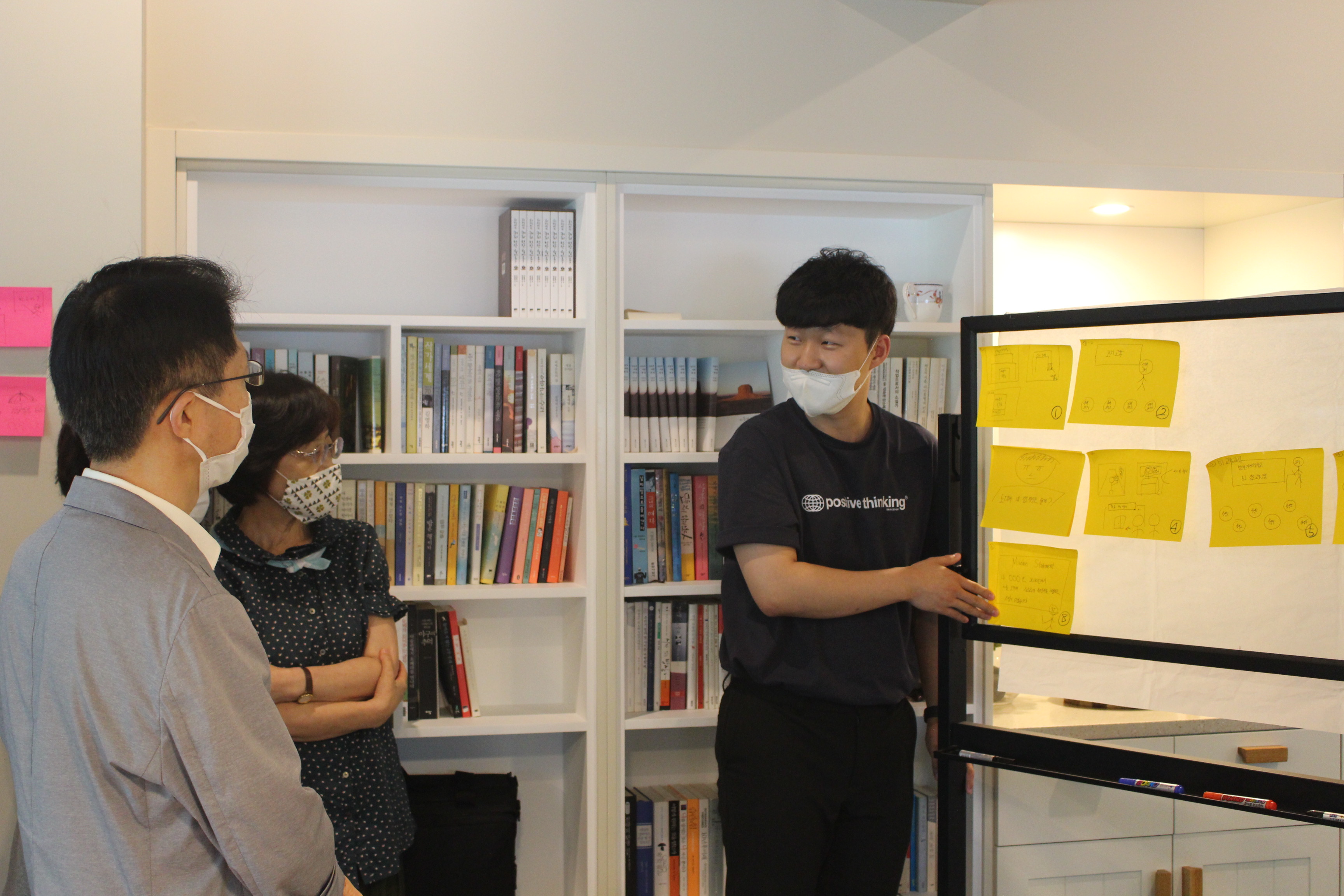 교육을 받은 후 직접 실습해보는 과정을 거치면서 아이디어를 구체화시키고 같이 참여하는 다른팀이 대상자가 되어서 피드백을 주며, 실현시키기 위한 방안을 마련하기도 했습니다.