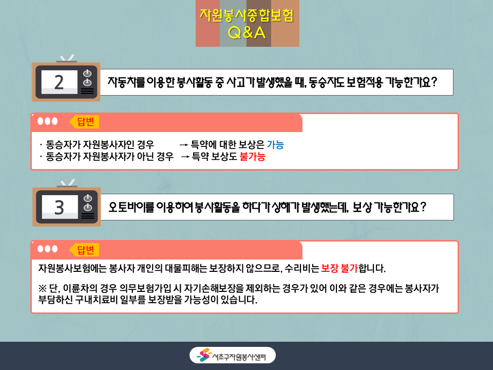 | 자원봉사종합보험 Q&A #3 (0) | 2020.07.31 |