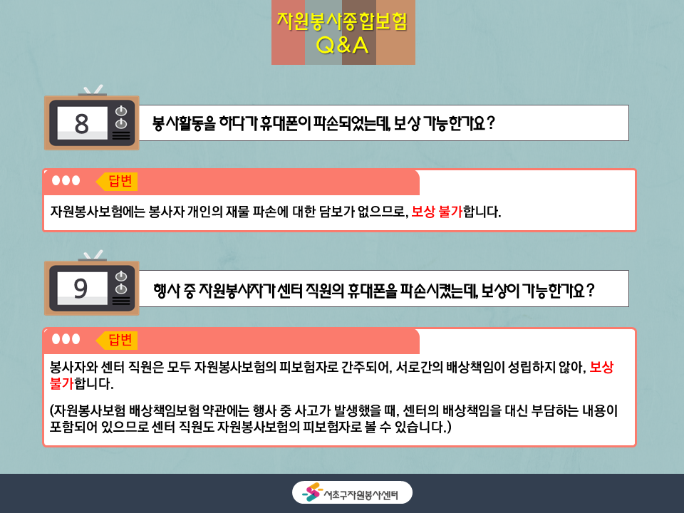 | 자원봉사종합보험 Q&A #3 (0) | 2020.07.31 |