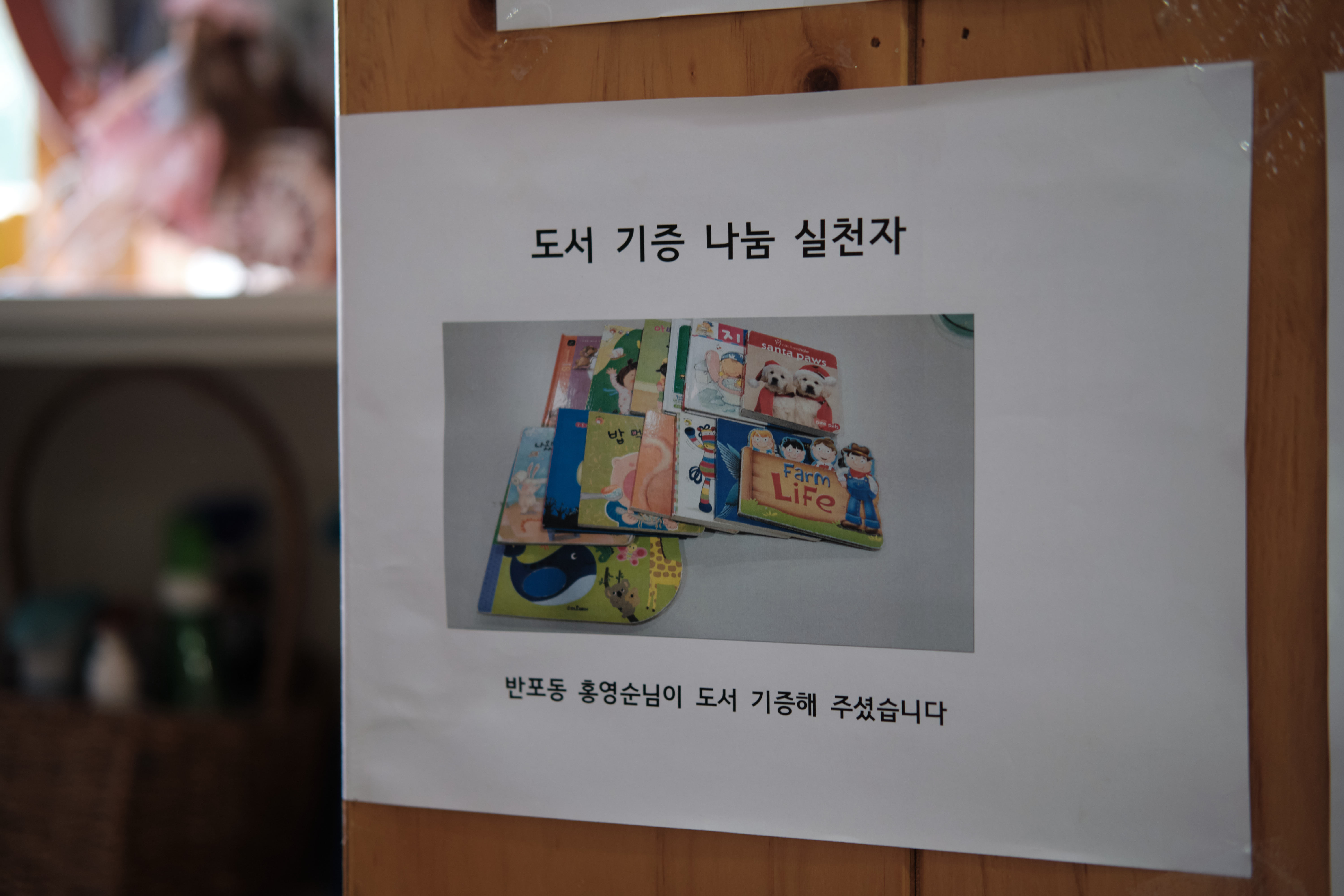 홍길선 선생님과 대화를 나누는 중에 문 밖에서 쿵! 소리가 들리는거에요. 밖을 내다보니 한 젊은 엄마가 엄청 큰 짐을 가지고 난감해하는 표정으로 앞에 계속 서 있는 거에요, 알고보니 장난감을 기증하고 싶어 가져왔는데 문이 닫혀있어 당황했대요(웃음). 요즘 안 좋은 상황에도 불구하고 기증하려고 찾아오느 너무 감사하기도 하고, 우리가 오늘 안나왔으면 어쩌나 싶어 웃기기도 한 상황이었어요.