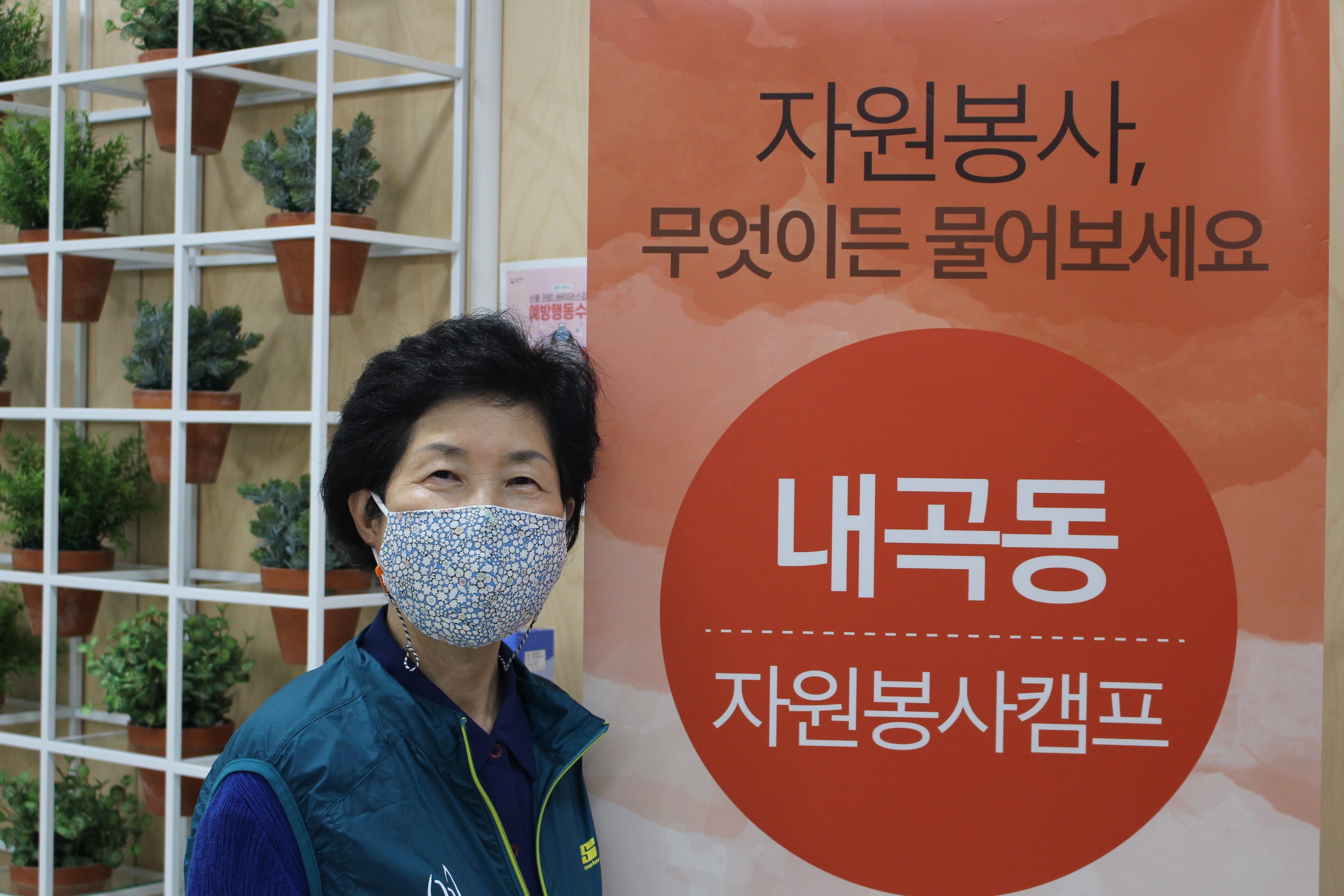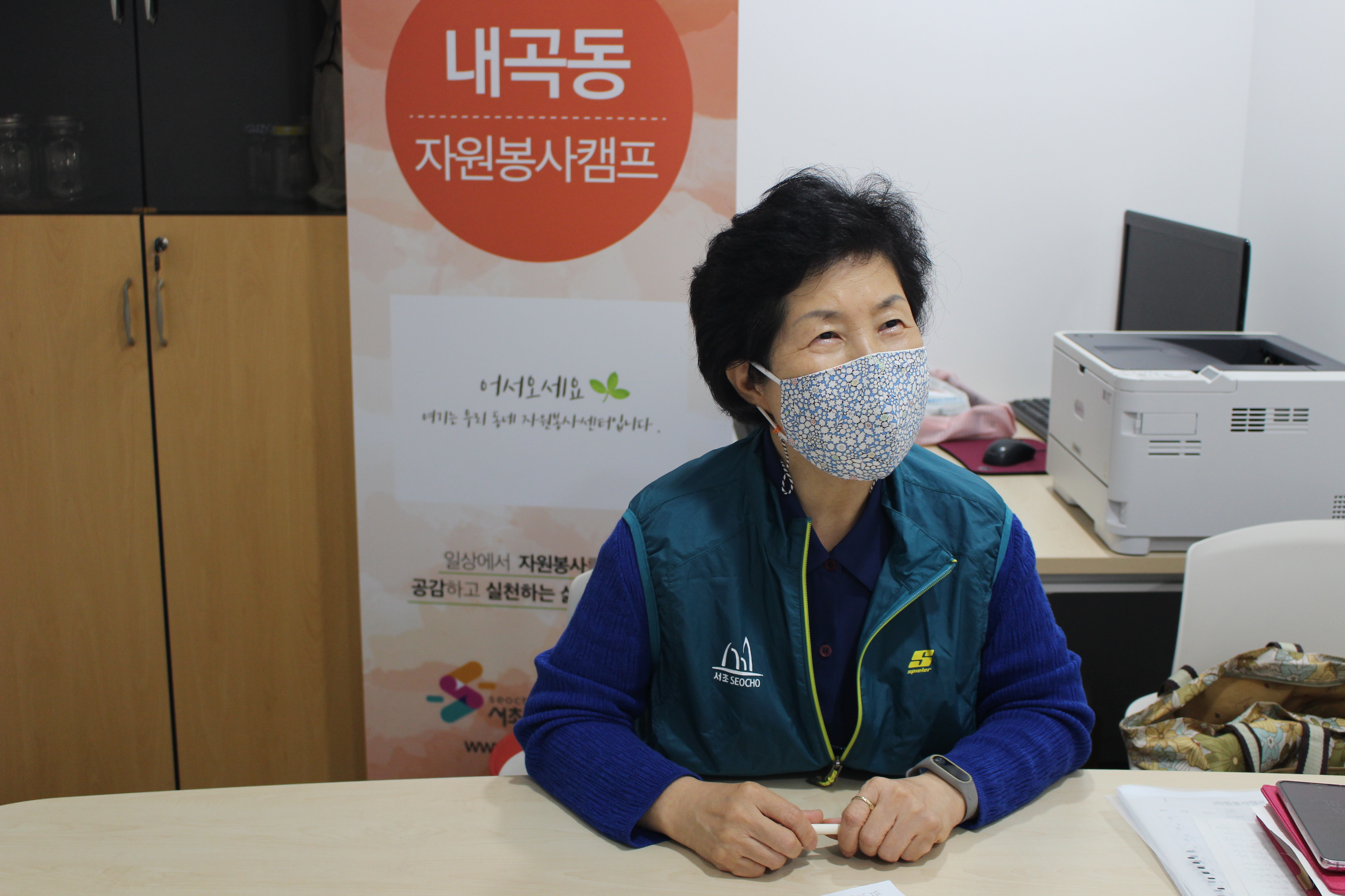 자원봉사는 일상생활과 아주 밀접한, 우리가 살아가는데 함께 하는 공간과 시간이라고 생각해요. 저에게 자원봉사란 삶의 자부심이고 기쁨이며 보람입니다. 저의 건강이 허락하는 한까지 내곡동 캠프와 함께 하고 싶네요.