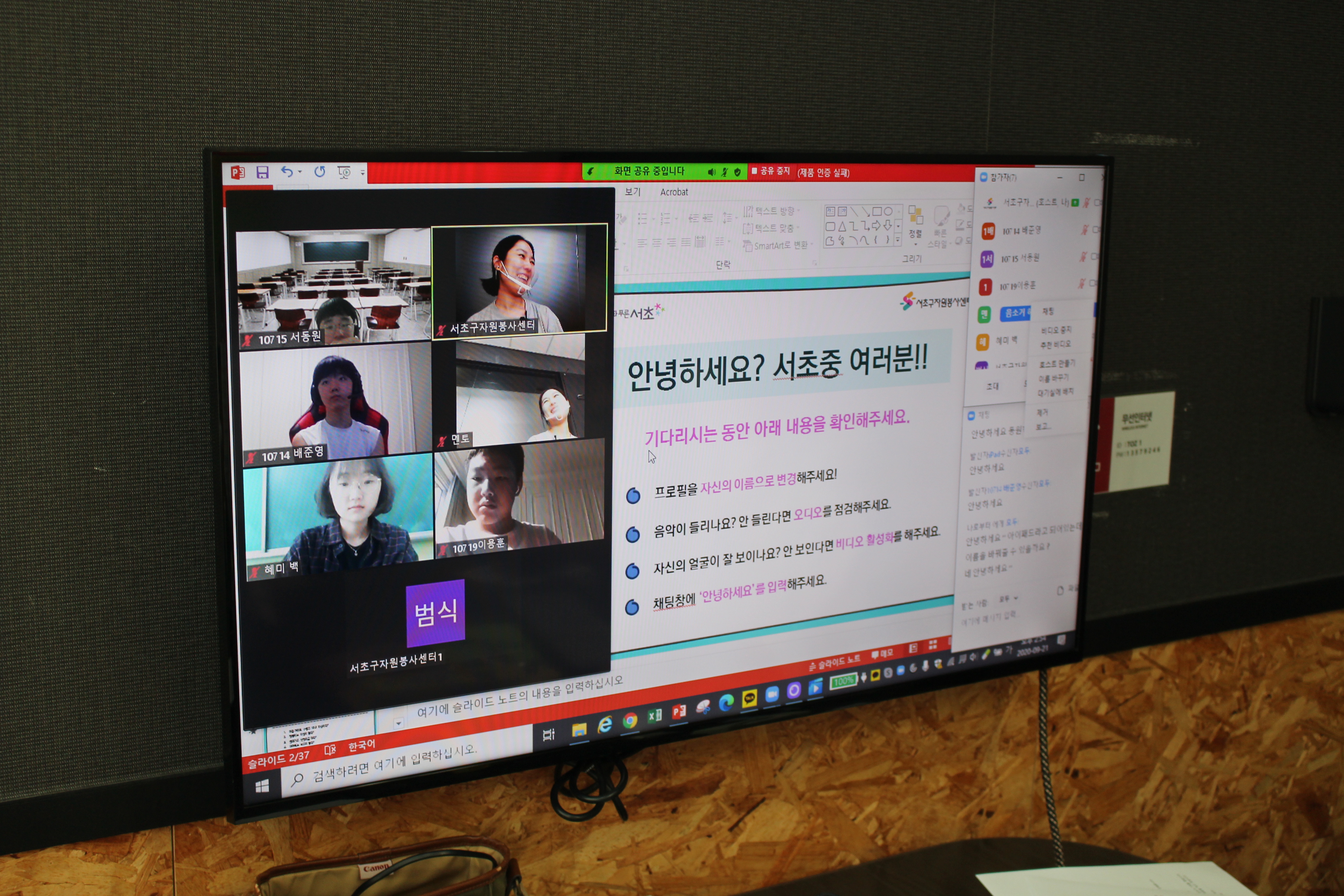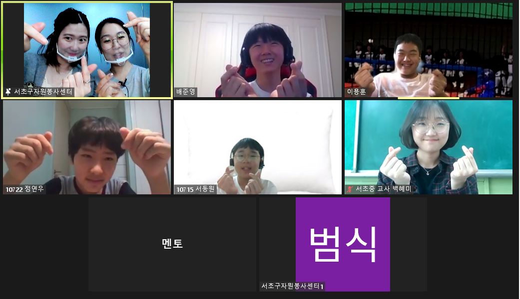 이번 봉사활동에 자발적으로 참여한 4명의 서초중 학생들과 담임선생님까지 모두 온라인 접속을 확인한 후
