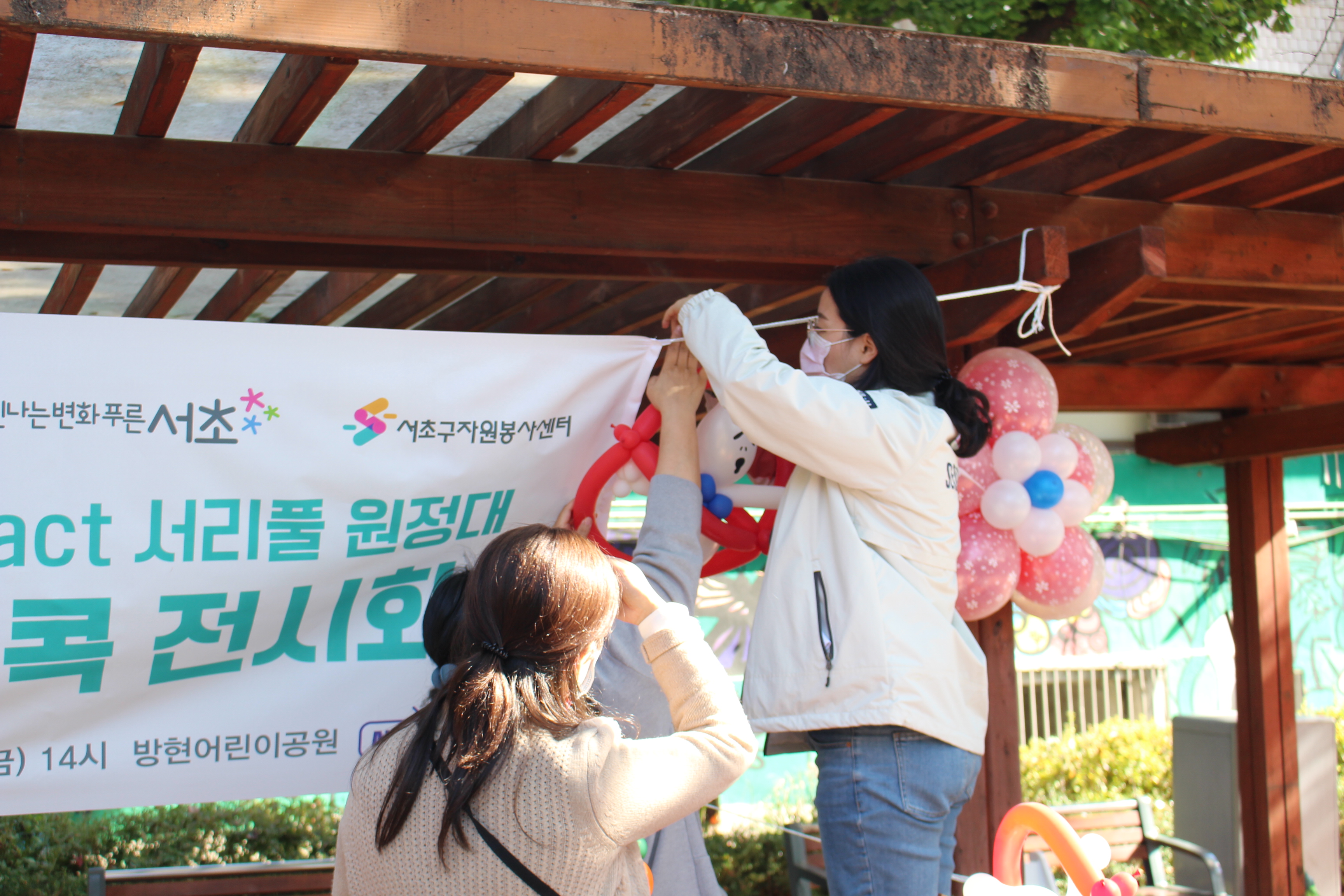 현장에서 전시회를 도와주고 계신 방배3동 반딧불센터 강영미 센터장님께 잠시 인터뷰를 요청해보았습니다.