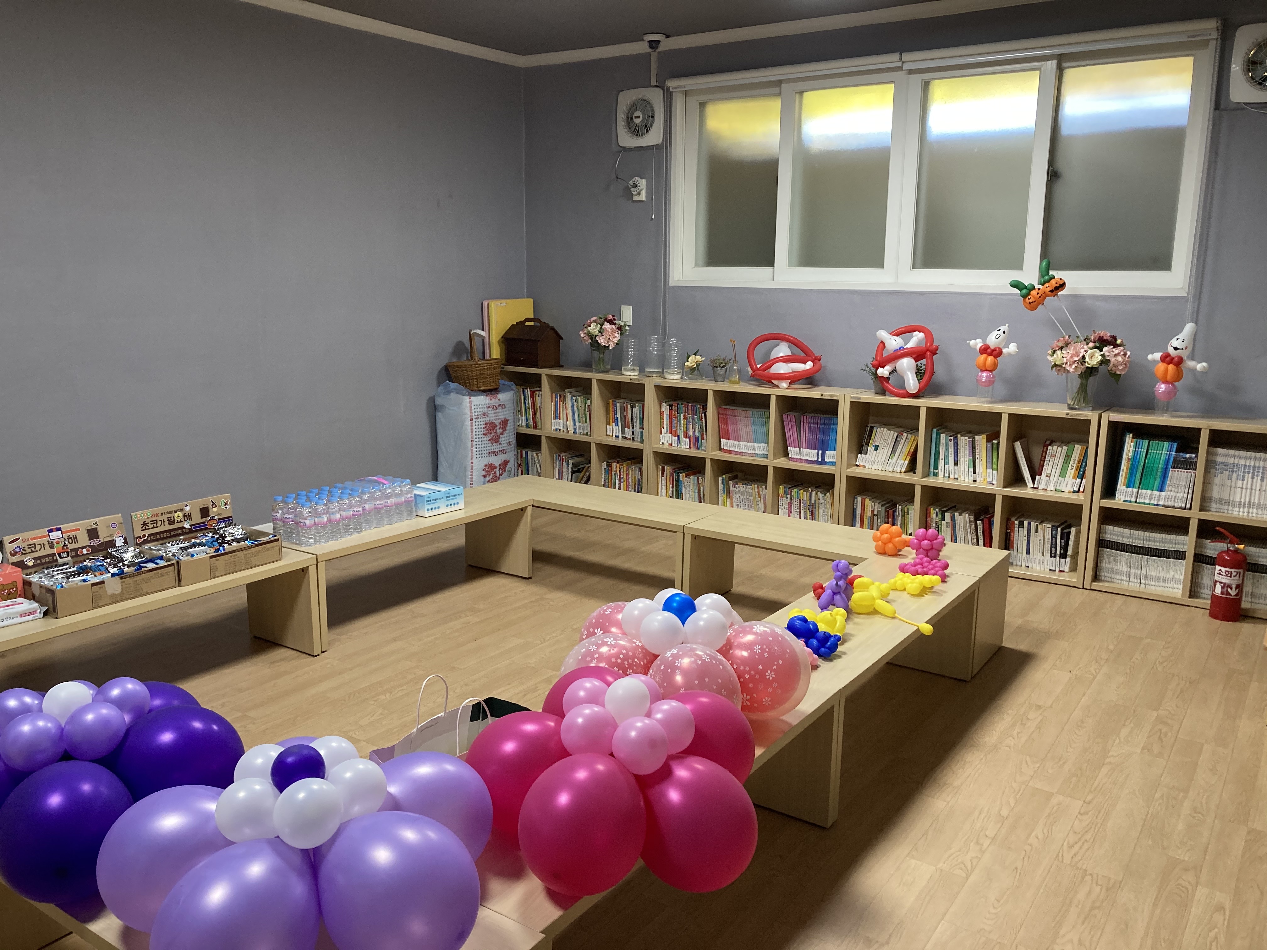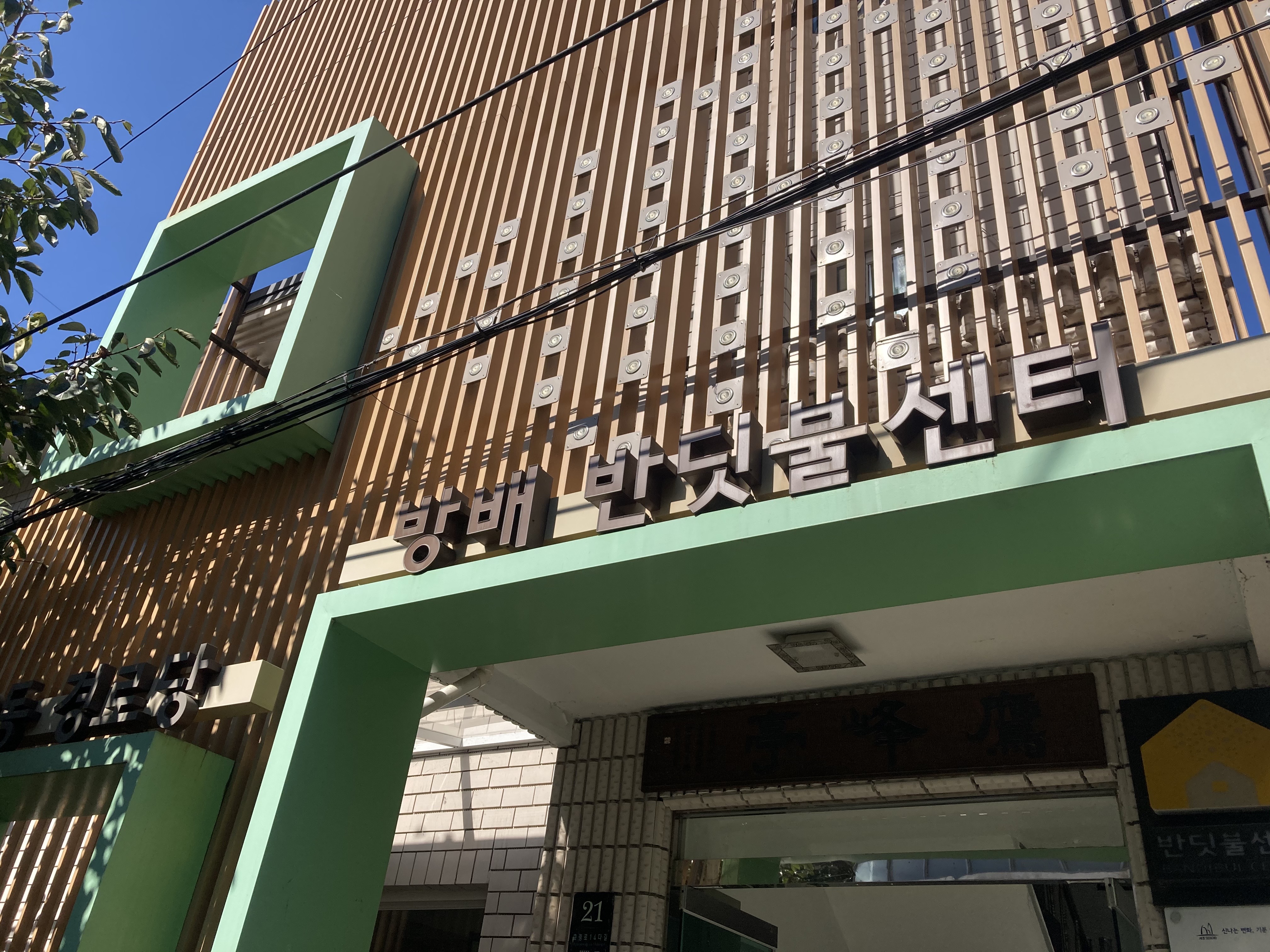 우선 공원 바로 옆에 있는 방배3동 반딧불센터로 들어가 보았습니다. 계단을 따라 내려가면 지하에 대기실이 마련되어 있었습니다! 곧 전시될 물품들이 보관되어 있었고, 봉사자분들이 휴식하며 드실 수 있는 과자나 음료를 준비해 놓았네요!