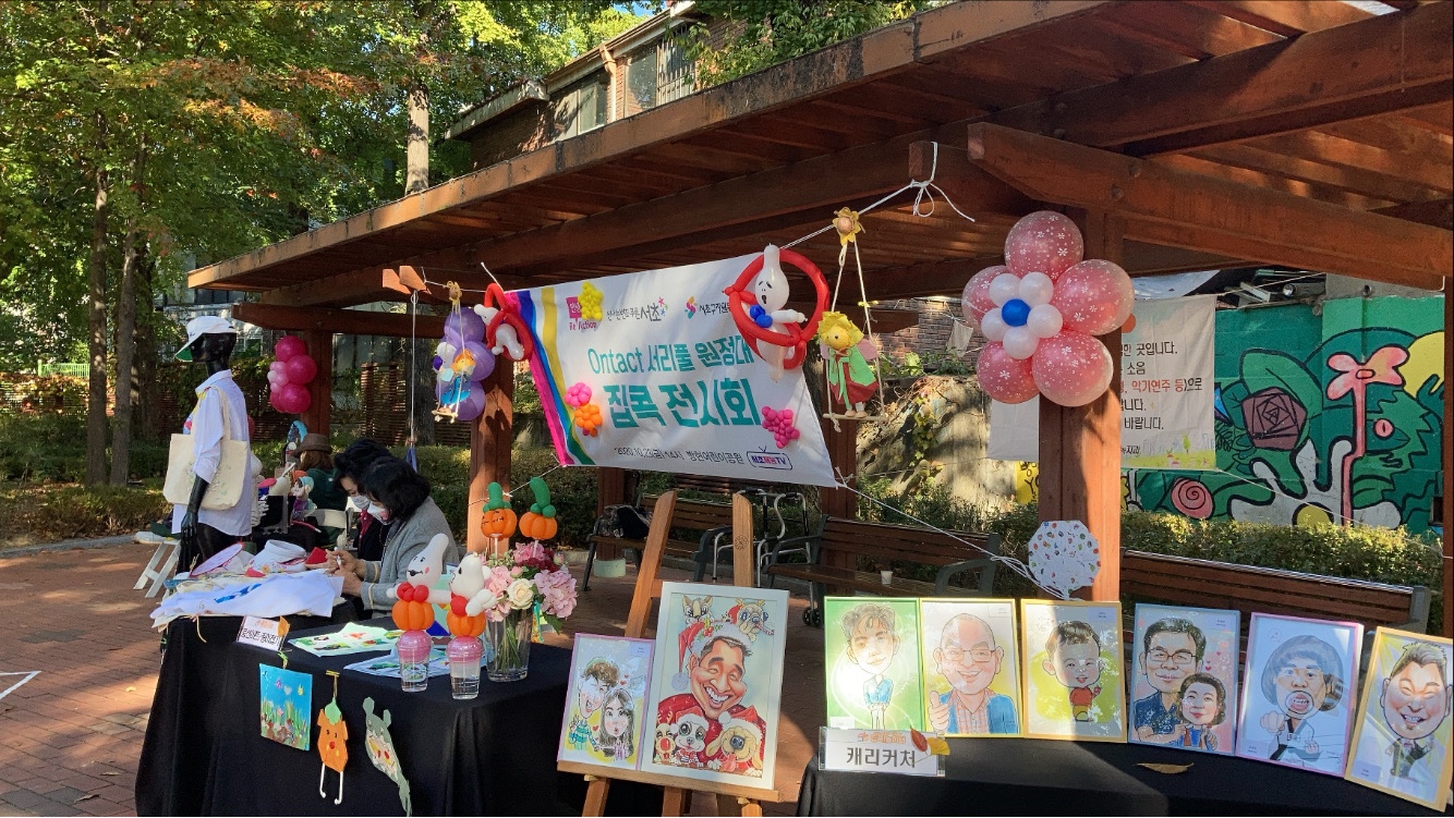 알록달록 화려한 작품들이 보이시나요? 집콕 전시회를 한껏 풍성하게 만들어준 풍선아트, 캐리커처, 손뜨개, 패션페인팅 등의 영상은 유튜브에 "서초재능 TV"를 검색하시면 볼 수 있습니다!