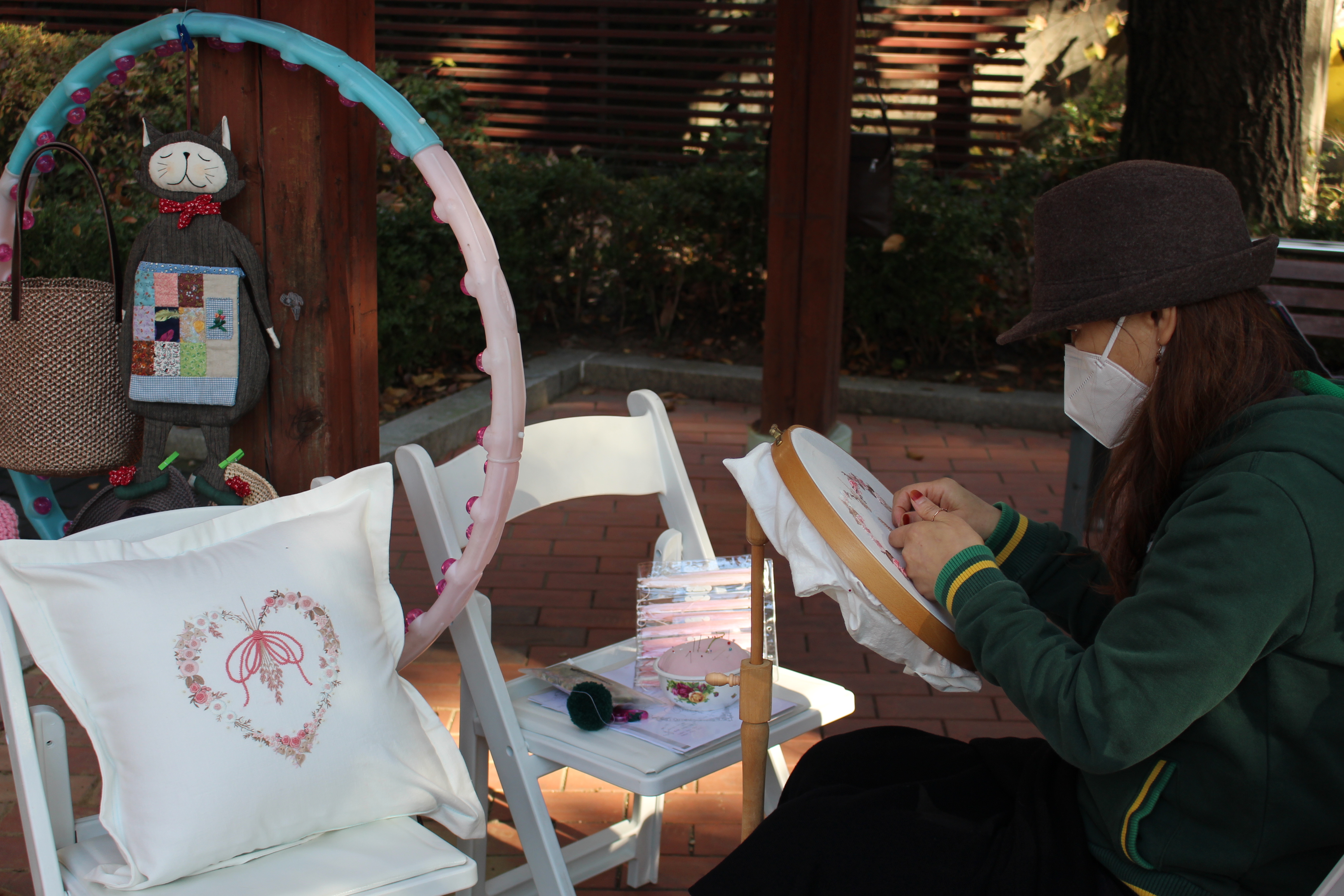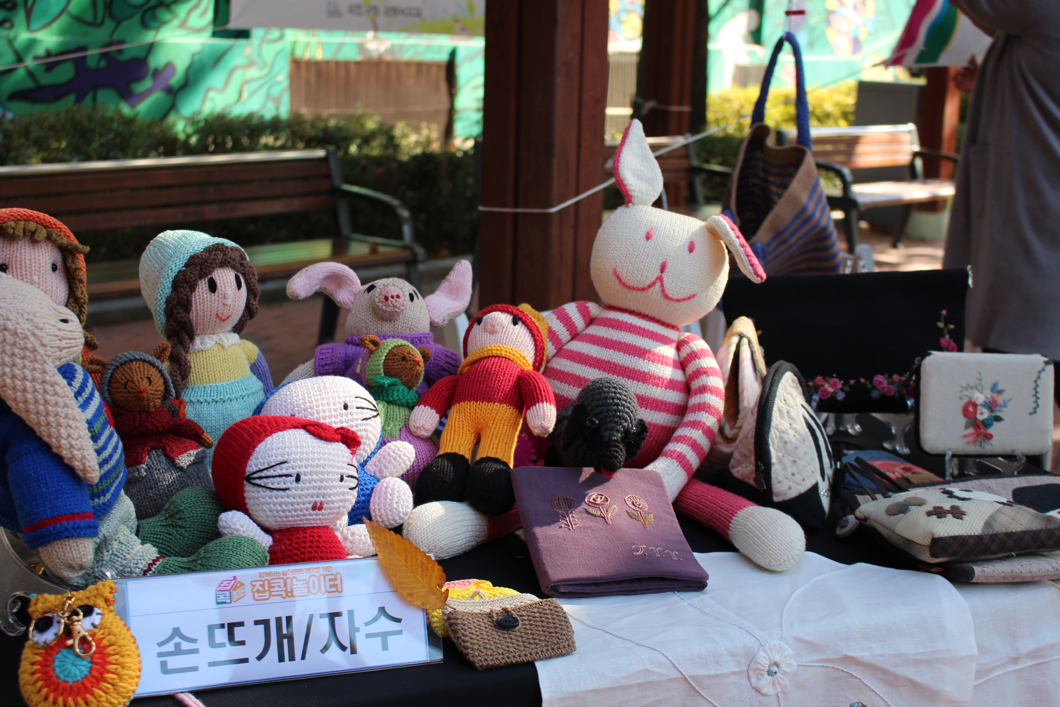 한 땀 한땀 직접 제작한 손뜨개와 자수 작품이 가득하죠? 귀엽고 예쁜 작품들이 테이블을 가득 채웠답니다! 이렇게 예쁜 손뜨개나 자수 작품을 '서초재능TV' 유튜브 영상을 통해 누구나 쉽게 따라 만들 수 있다니 저도 해보고 싶네요!