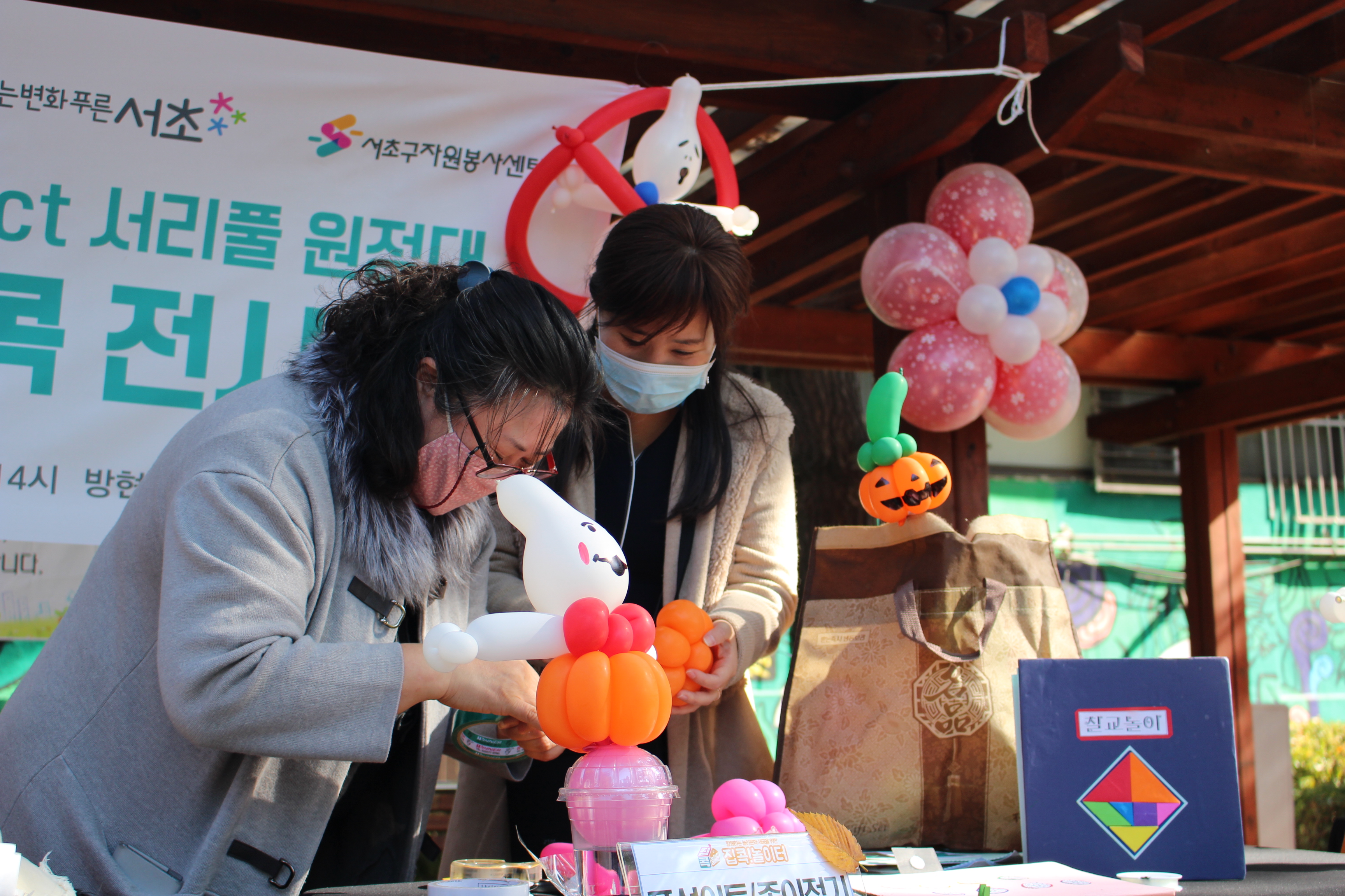 이 곳에서는 서초구자원봉사센터 재능나눔의 온라인 플랫폼인 '서초재능TV' 채널에서 <집콕 놀이터>, <집콕 클래스> 영상을 보고 따라 만든 주민들의 작품과 활동에 참여한 봉사자들의 작품이 전시되었습니다.