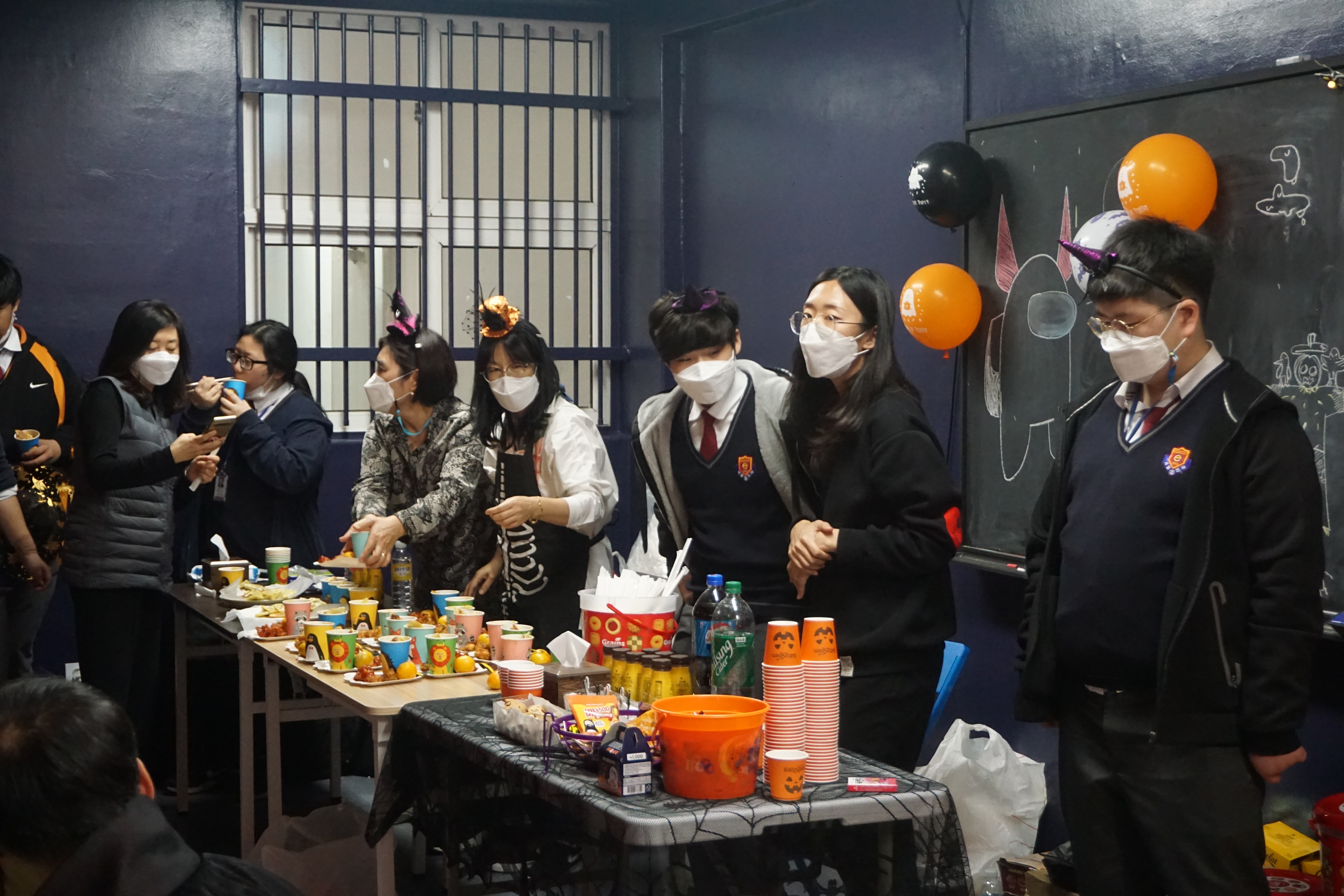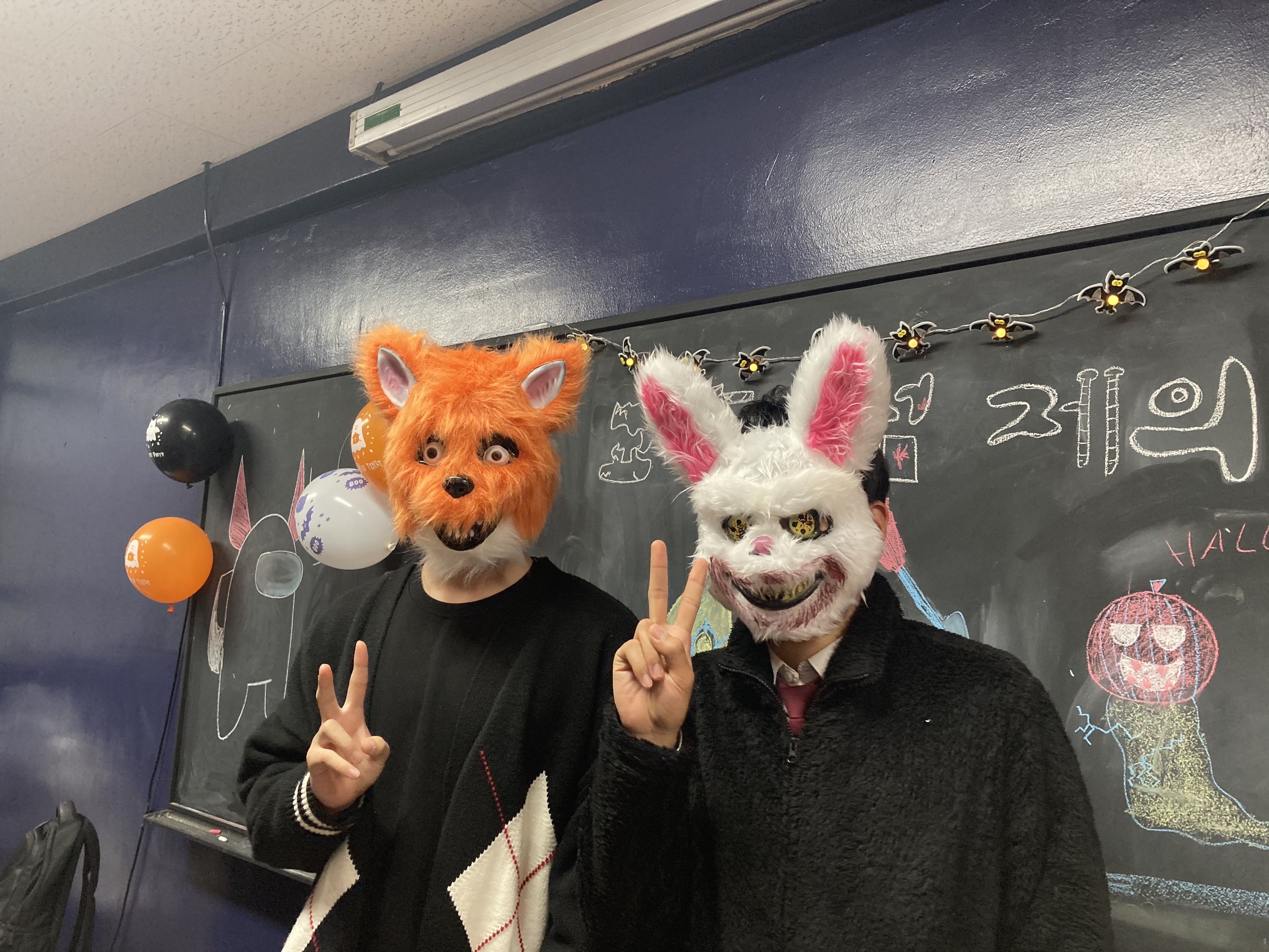 처음 입구에 들어서자마자 할로윈 분위기로 꾸며진 '두드림실'의 모습을 보고 정말 깜짝 놀랐는데요, 아기자기하게 장식된 벽과, 퀄리티 높은 무대장치 등을 보니 선생님과 학생들이 얼마나 열심히 준비했는지 확!!! 느낄 수 있었습니다. 학생들도 할로윈 머리띠 소품으로 한층 더 분위기를 냈답니다!