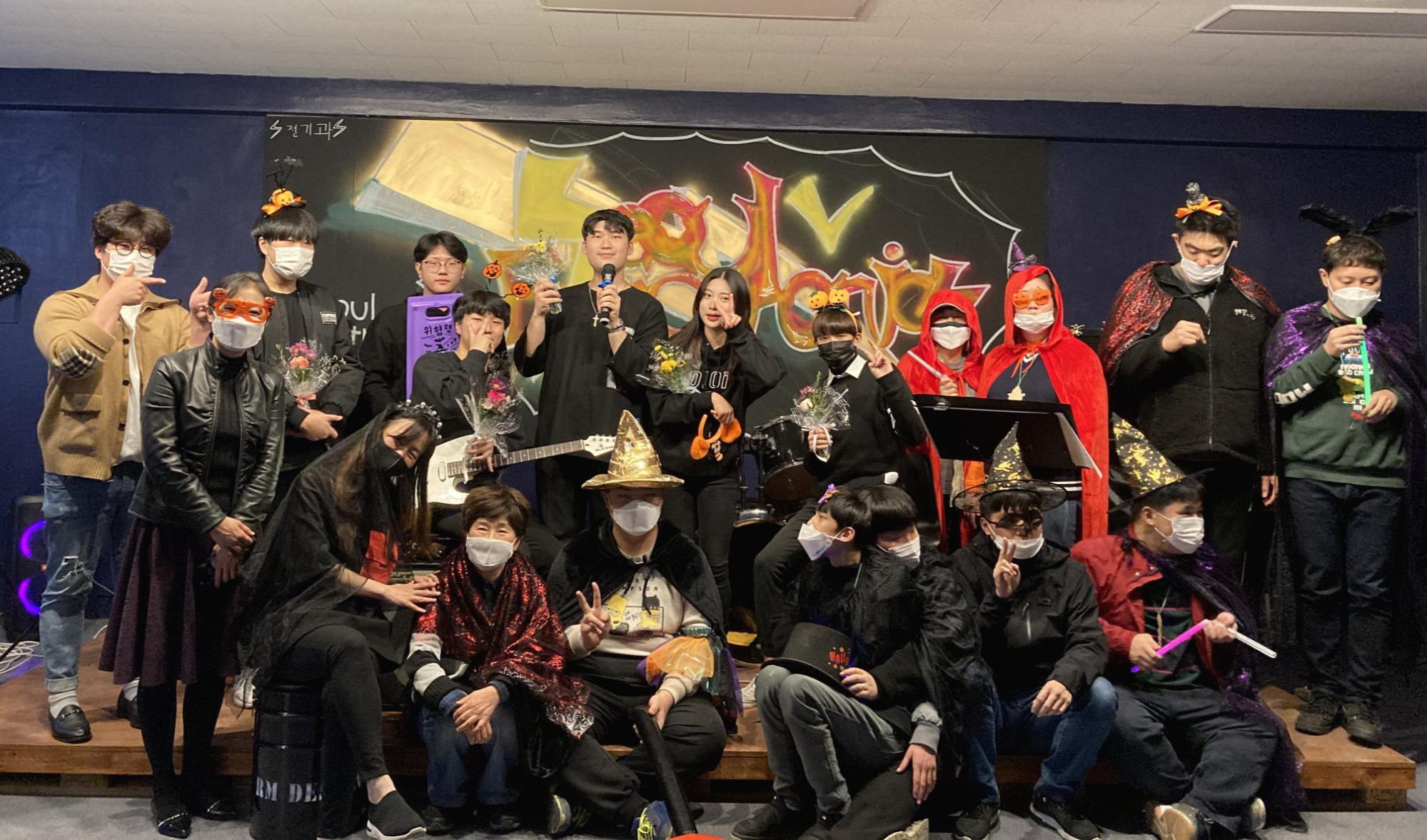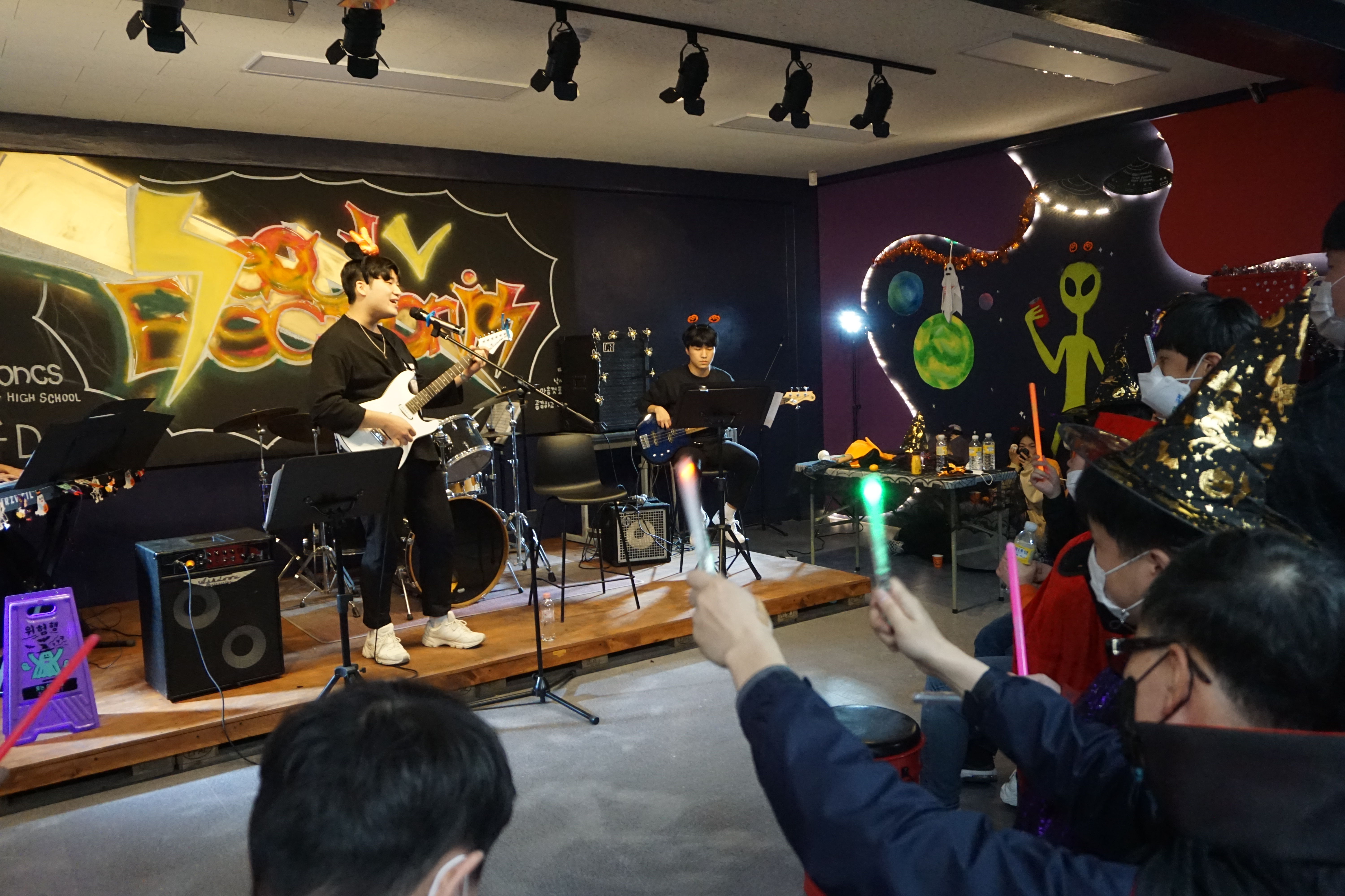 공연을 할 장소는 빈 교실이었는데요! 행사를 위해 밴드부뿐만 아니라 다른 동아리 친구들과 힘을 합쳐서 새롭게 만든 공간이라고 합니다. 정말 멋진 공간으로 변했죠?