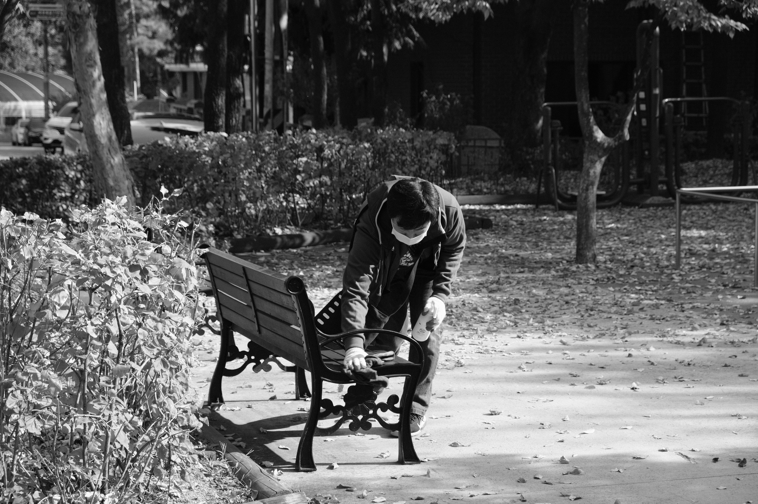 기다리는 동안 깨끗하고 안전한 동문 어린이 공원을 만들기 위해 소독과 청소를 했습니다. 미끄럼틀, 시소, 그네, 벤치 구석구석 빠진 곳 없이 소독 작업을 해주었습니다. 사방치기의 선들이 다 마른 뒤, 테이프를 떼어내고 각자의 개성이 담긴 숫자 쓰기를 시작했습니다. 1, 2, 삼, 4, 다섯, 6, 7, 8 완성!