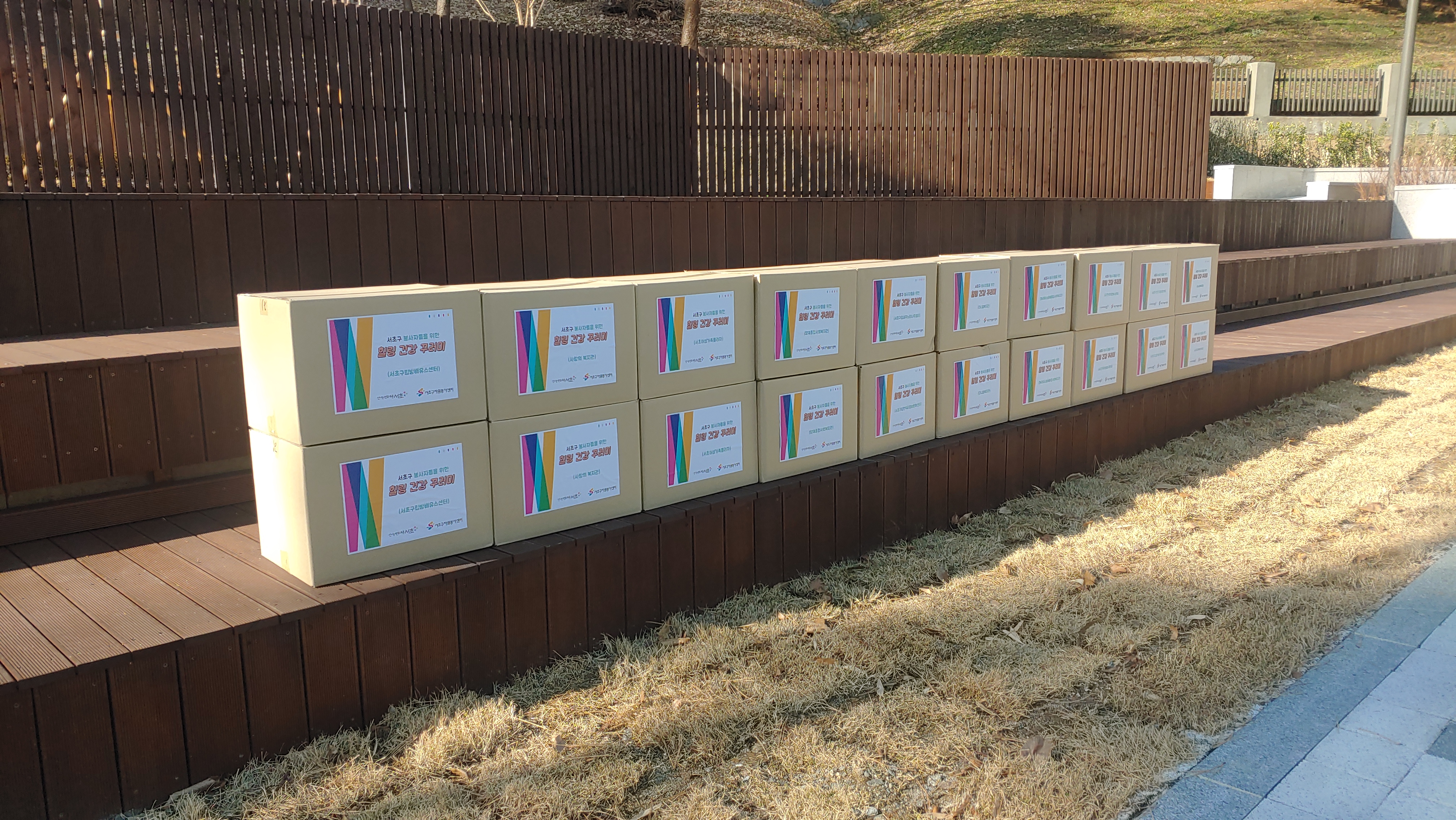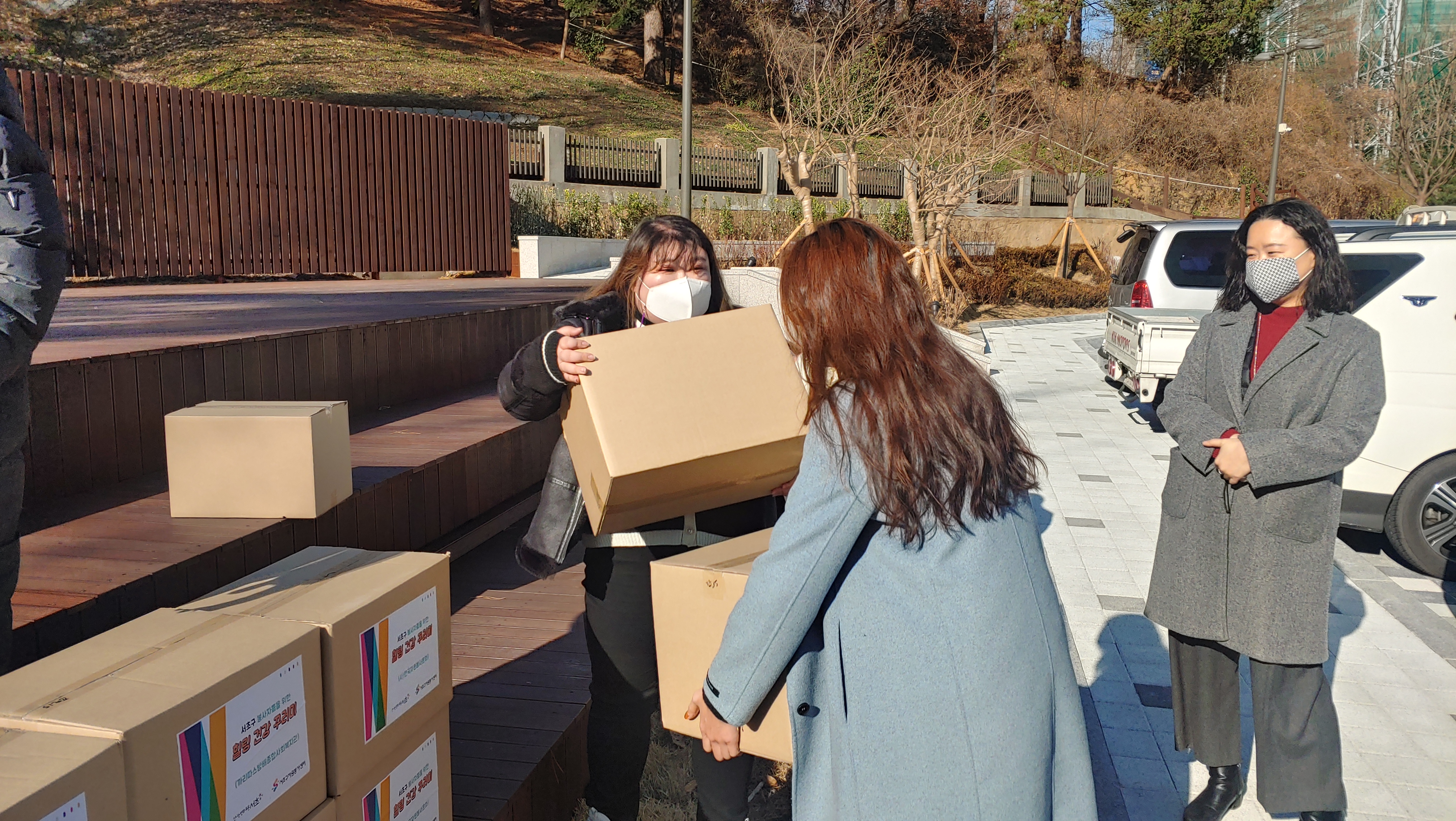자원봉사자들을 위한 힐링 건강꾸러미는 11개 지역사회 복지기관에 총 400개 전달되었으며, 코로나19의 전파를 막기위해 서초문화예술회관 주차장에서 드라이브스루 방식으로 전달식이 진행되었습니다.
