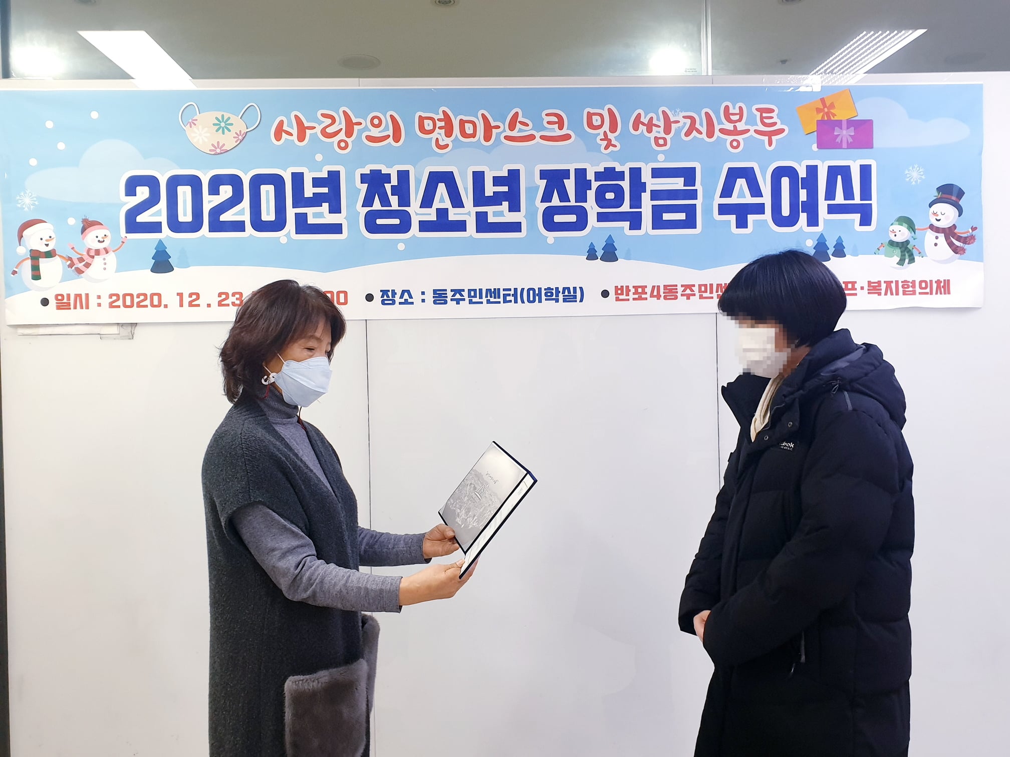 올해를 마무리하는 12월, 서초구 자원봉사캠프와 함께 9개 동에서 소외된 이웃들의 따뜻한 겨울나기를 위한 성금 및 성품을 전달하였습니다.