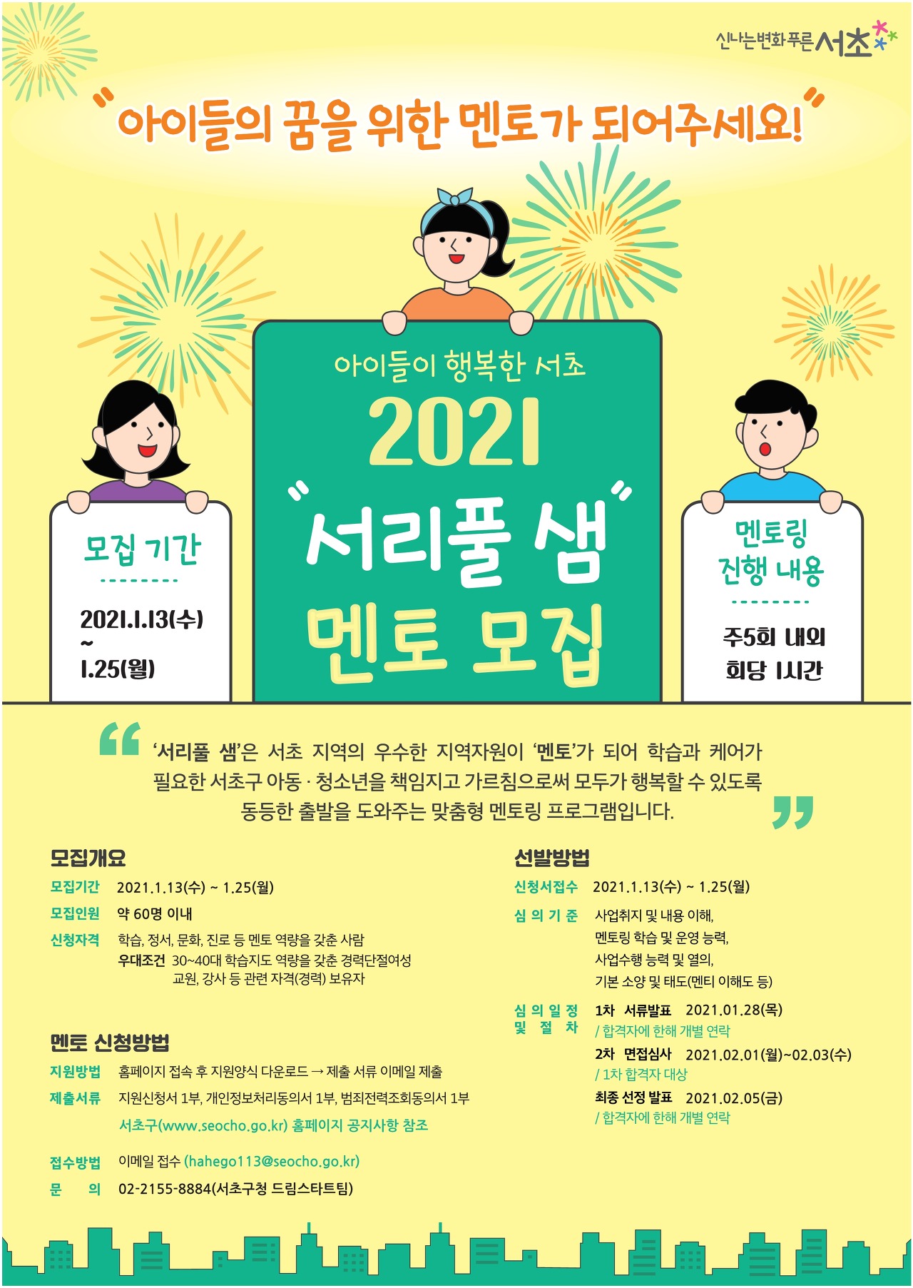 관련 사이트: www.seocho.go.kr/site/mentoring/01/10100000000002019120609.jsp