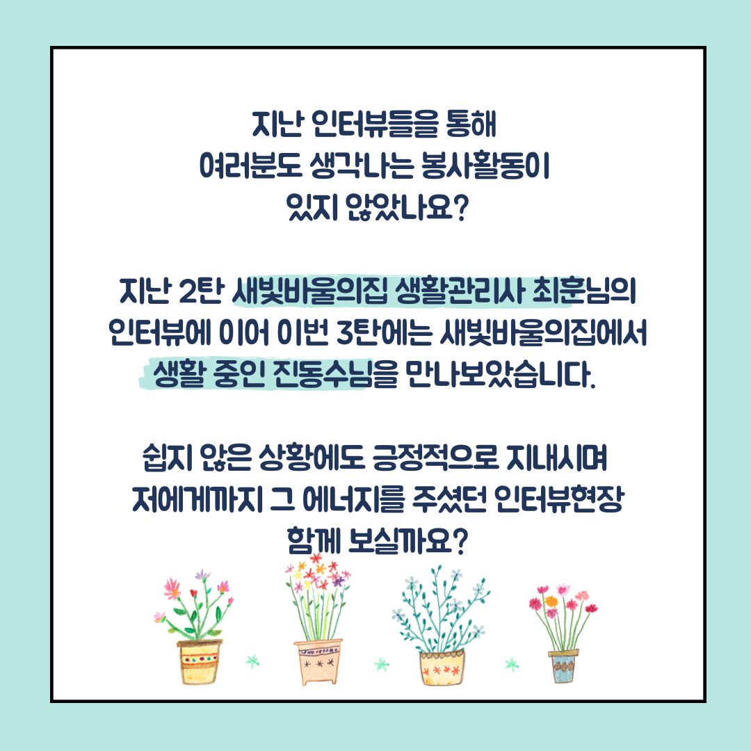 | [기획기사]봉사자 덕분에②_최훈 생활관리사(새빛바울의집)편 (0) | 2021.01.29 |