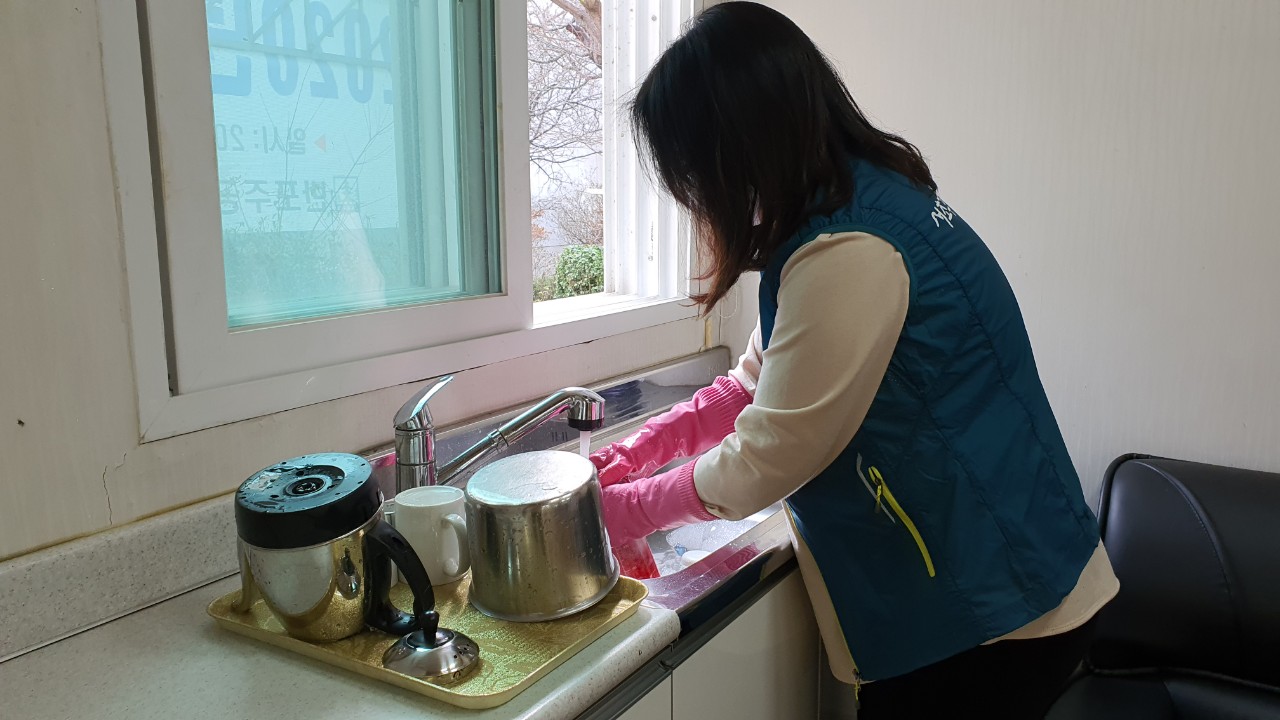 손발이 닿을 수 있는 곳곳, 창문, 화장실, 신발장, 사용하시는 그릇 등까지 기본적인 청소와 더불어 살균제로 소독까지 촥촥!! 새봄이 와서 이 공간이 다시 어르신들의 웃음소리가 가득할 때 마음 놓고 이용하시길 바랍니다.