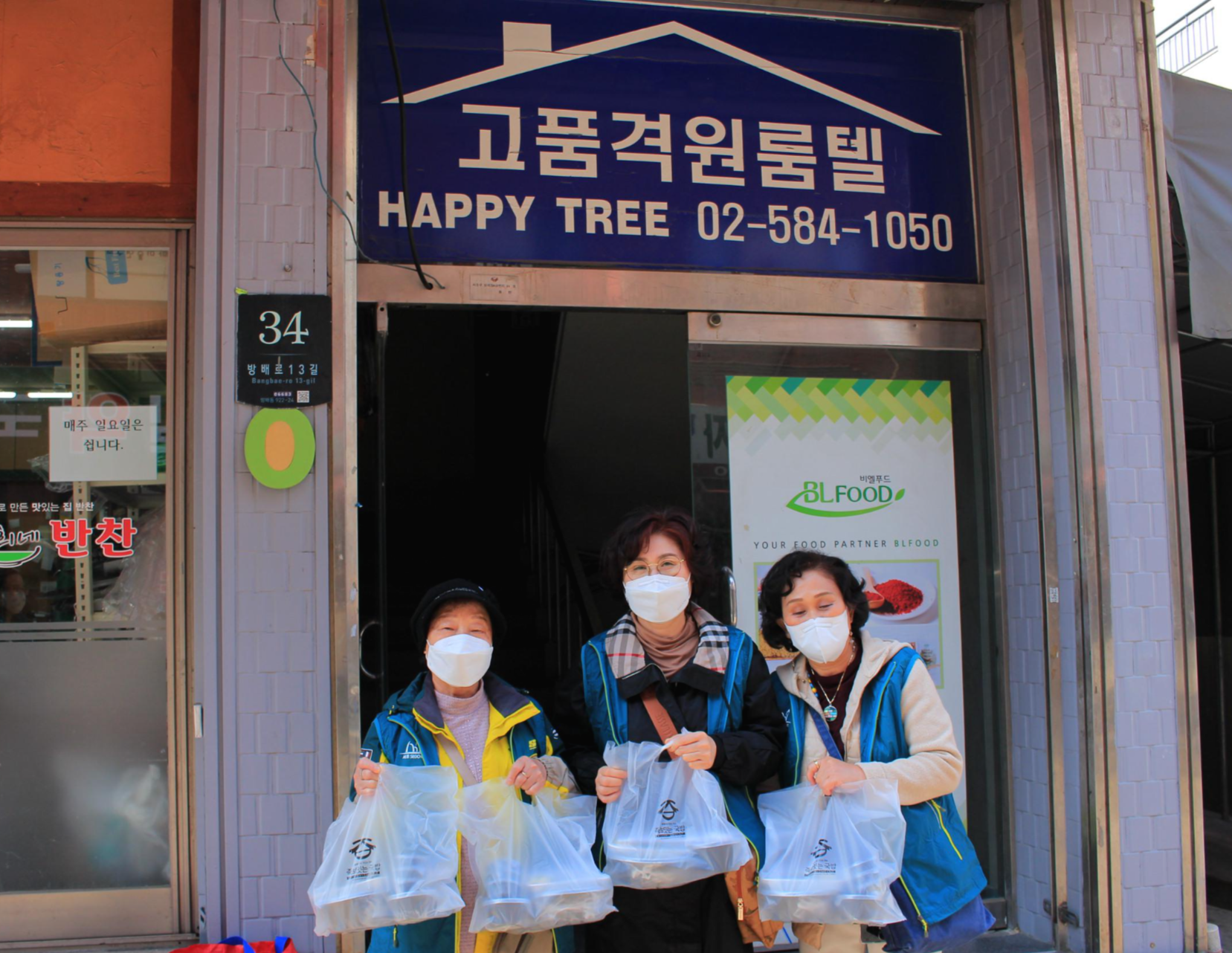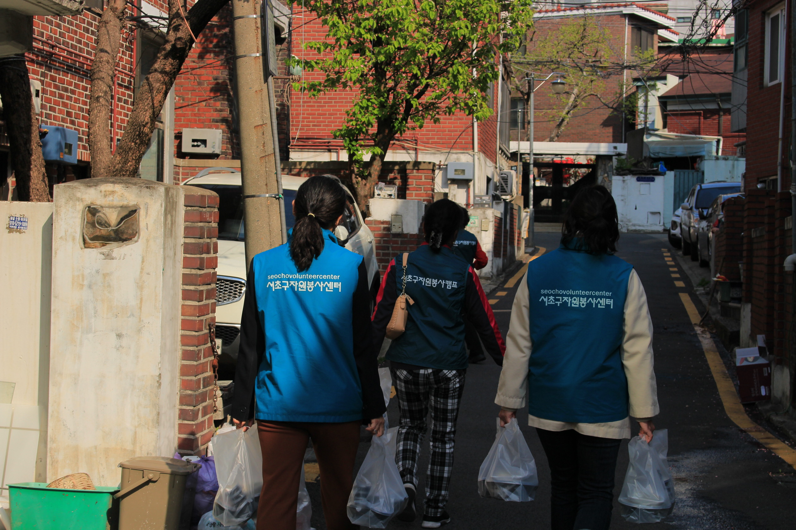 처음으로 다녀온 곳은 방배1동으로, 서초구 자원봉사캠프에서 오신 방배1동 자원봉사자분들이 고시원 등 1인 가정을 위해 전달해 드리는 것을 함께 다녀왔어요!