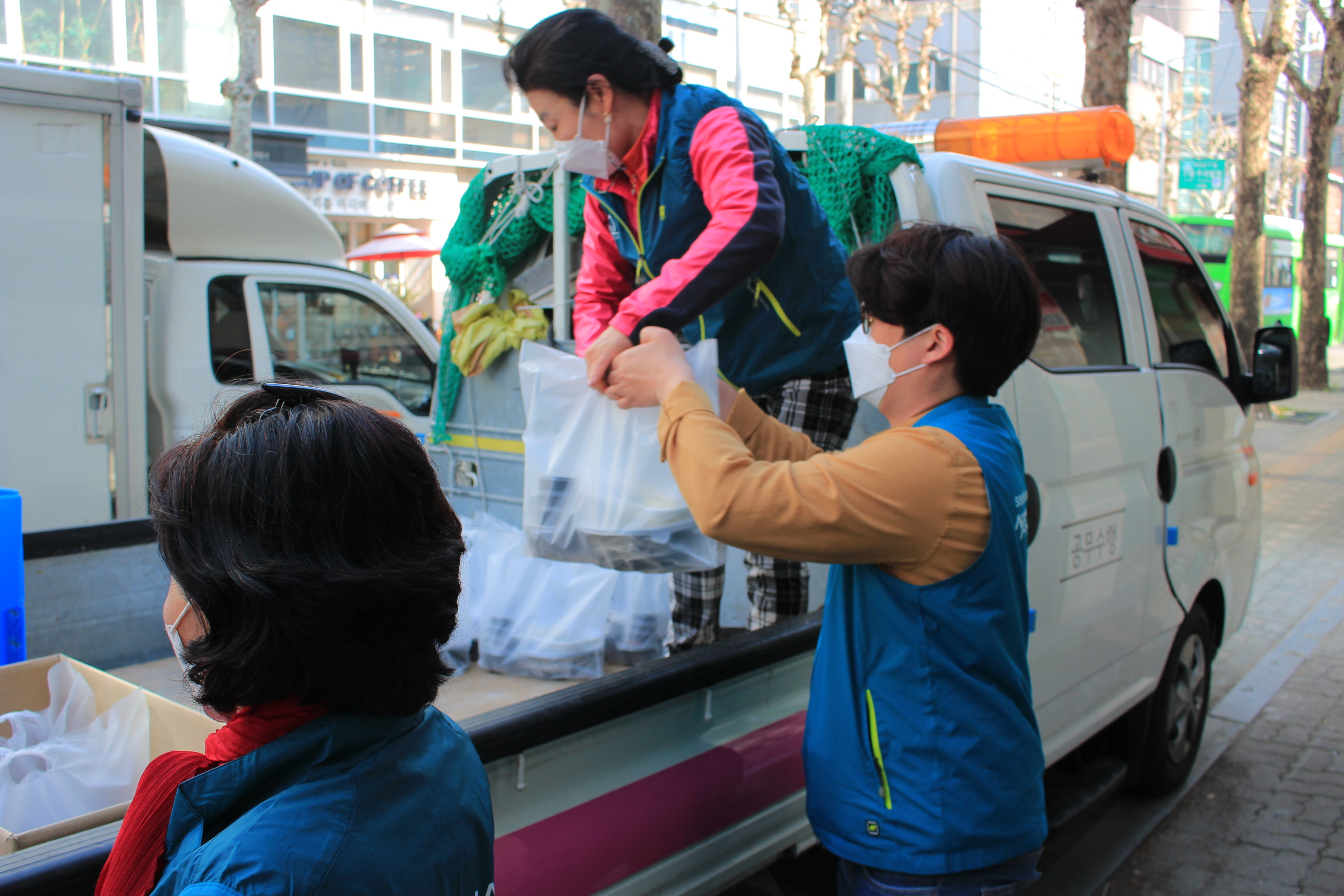 다시 '족보잇는 국밥'으로 와서 방배2동 자원봉사자분들과 함께 국밥 30그릇을 가지고 방배2동으로 다녀왔어요!